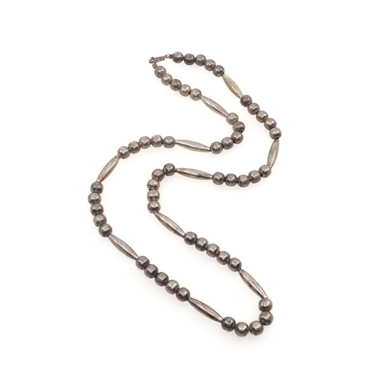 Vintage 1970s Sterling Silver Navajo Native American Hand Made Bead Single Strand 22" Necklace