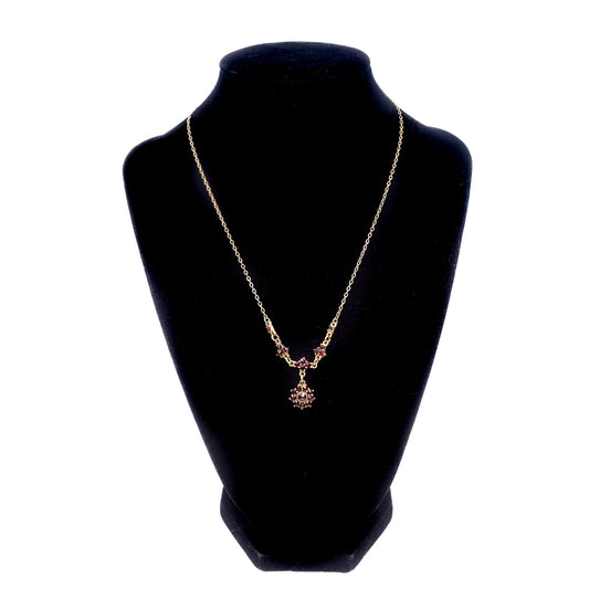 Vintage 1960s Rose Cut Bohemian Garnet and Flower Pendant 18" Necklace