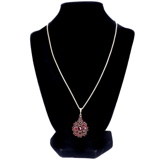 Vintage 1960s Swedish Rose Cut Red Garnet and 800 Silver Pendant Cluster 20" Necklace