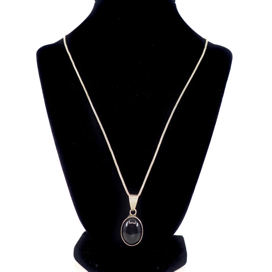 Vintage 1980s TAXCO Black Onyx and Sterling Silver Pendant 20" Necklace