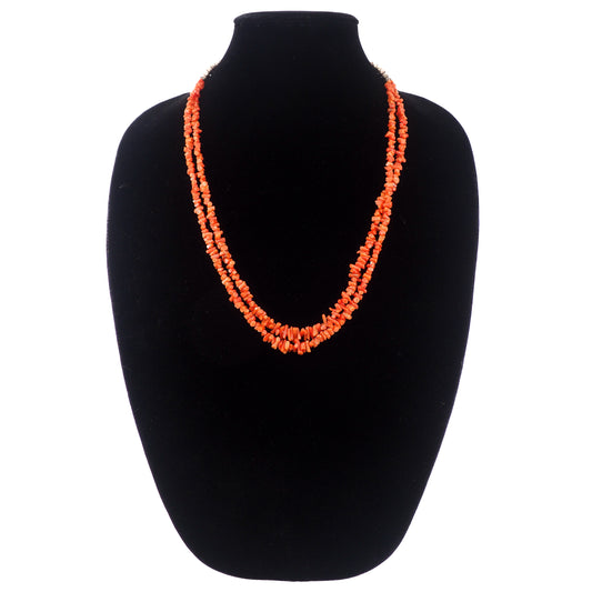 Vintage 1970s Navajo Orange Branch Coral and Sterling Silver Native American Double Strand Statement 25" Necklace