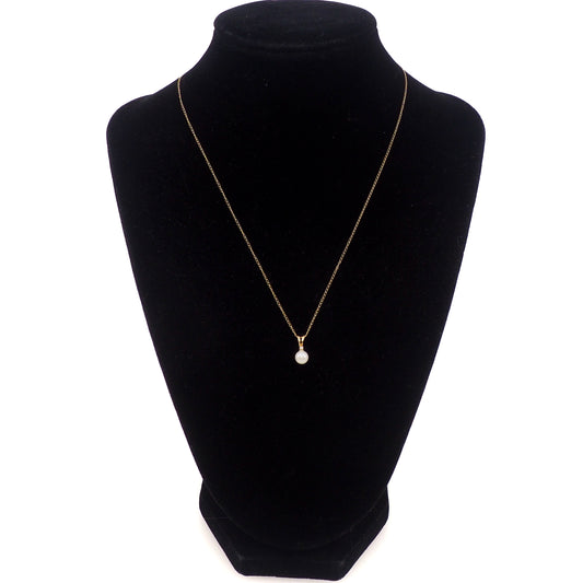 Vintage 14K Yellow Gold Akoya Pearl Diamond Pendant Necklace