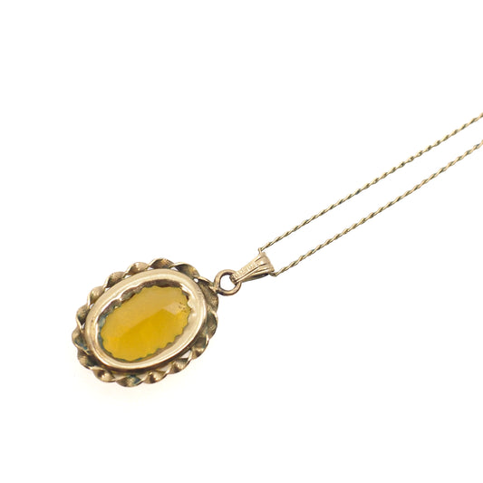 Vintage 1960s Orange Oval Glass Gold Filled Choker 16" Necklace