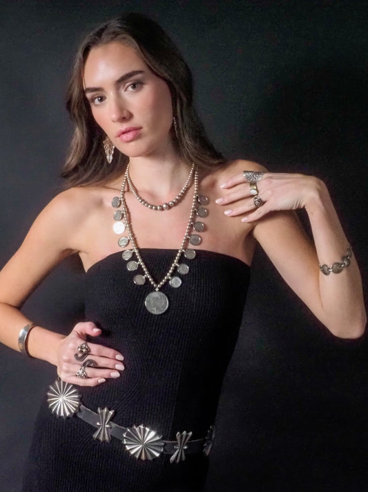 Vintage 1970s Sterling Silver Navajo Native American Bead Single Strand 29" Necklace