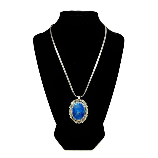 Vintage 1980s Lapis Lazuli Cabochon and Sterling Silver Southwestern Pendant 18" Necklace