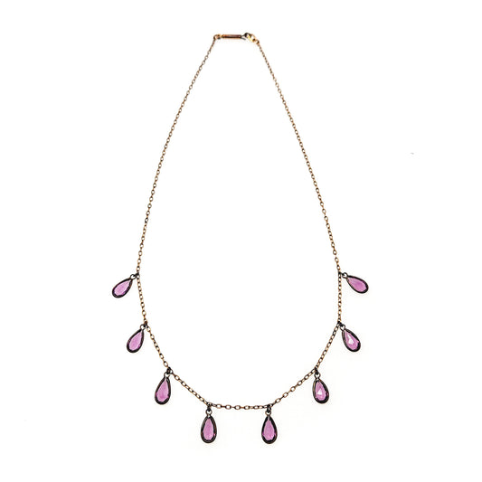 Vintage 1930s Art Deco Purple Teardrop Glass and Brass Choker 17" Necklace