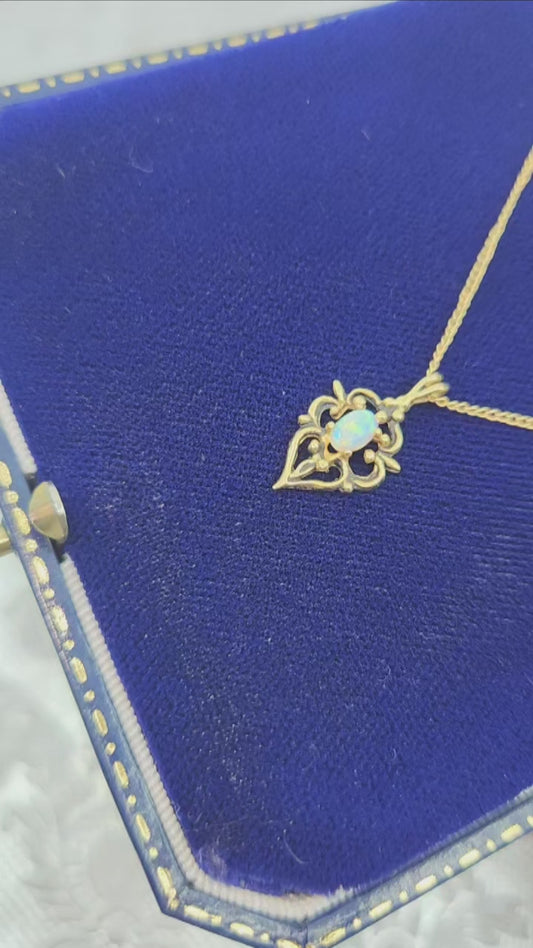 Vintage 1970s White Opal and Gold Filled Scroll Pendant 18" Necklace