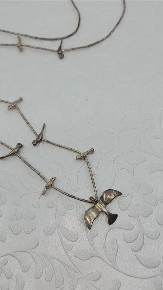 Vintage 1970s Zuni Native American Sterling Silver Bird Fetish Single Strand 24" Necklace