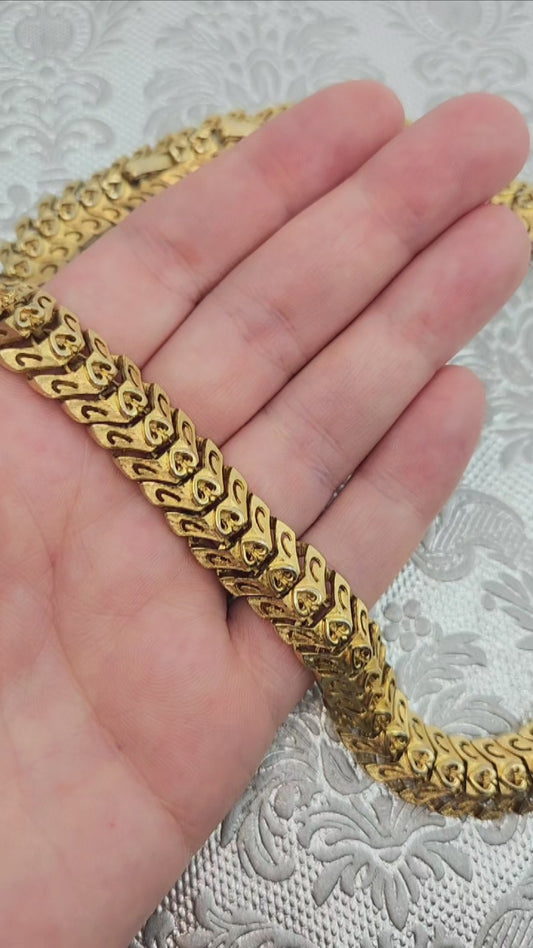 Vintage 1950s Gold Plate Heart Collar Choker Statement 16.5" Necklace