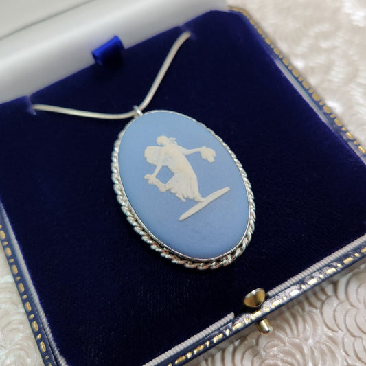 Vintage 1970s WEDGWOOD Jasperware Sterling Silver Blue Ceramic Choker Necklace and Brooch