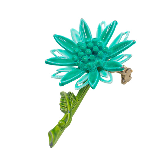 Vintage 1960s Blue Green Plastic Flower Floral Costume Brooch