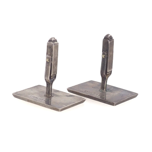Vintage 1960s Sterling Silver Japanese Kominka House Etched Unisex Cufflinks