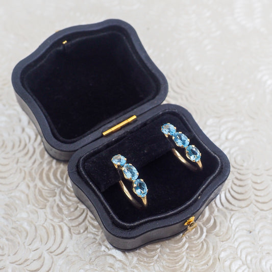 Vintage 1990s Blue Topaz and 10K Yellow Gold Hoop Pierced Earrings