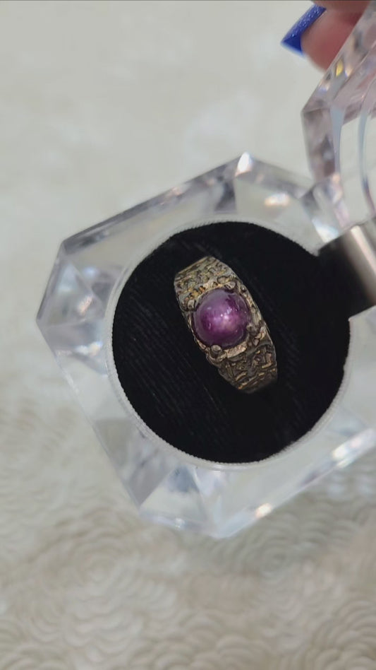 Vintage 1960s Natural Star Ruby and Sterling Silver Brutalist Ring Size 9.75