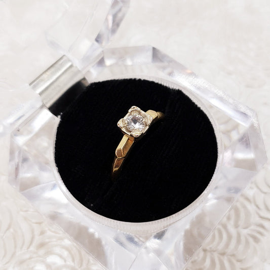 Vintage 1930s Art Deco Clear Zircon and 14k Yellow Gold Clear Illusion Ring Size 6.75