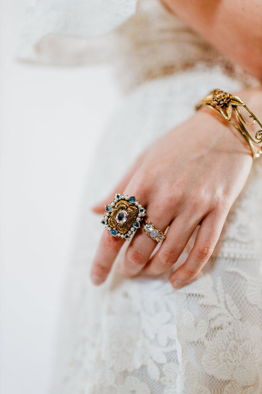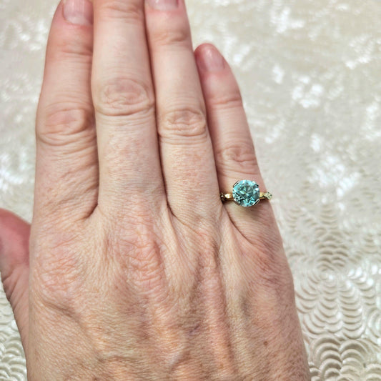 Vintage 1940s Retro Art Deco 3 Carat Blue Zircon Two Tone 14K Gold Ring Size 4.5