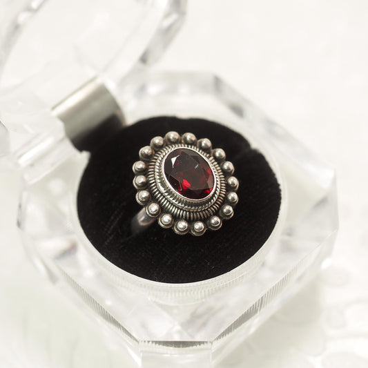 Vintage 1980s Oval-Cut Pyrope Garnet and Sterling Silver Solitaire Ring Size 7
