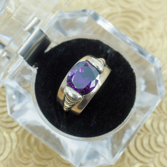 Vintage 1970s Dark Purple Color Change Glass and Sterling Statement Ring Size 7