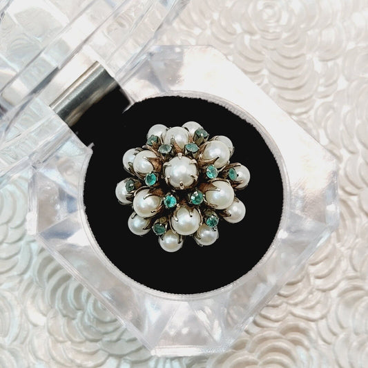Vintage 1950s Emerald, Cultured Akoya Pearl, and 10K Yellow Gold Cocktail Ring