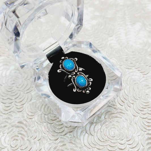 Vintage 1980s Blue Turquoise and Sterling Silver Navajo Flower Ring Size 5.25