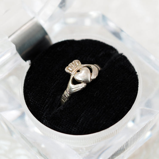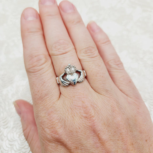 Vintage 1990s Sterling Silver Claddagh Irish Heart Hands Crown Band Ring Size 8