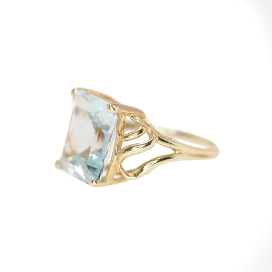 Vintage 1980s 5.11-Carat Natural Emerald Cut Aquamarine and 14K Yellow Gold Solitaire Ring Size 6