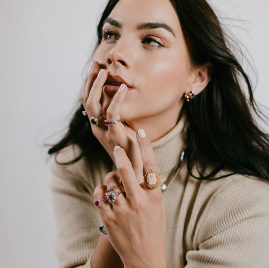 Vintage 1970s Aries Faux Cameo Ring - 70s Pink Imitation Cameo and Gold Toned Aries Ram Ring Size 7