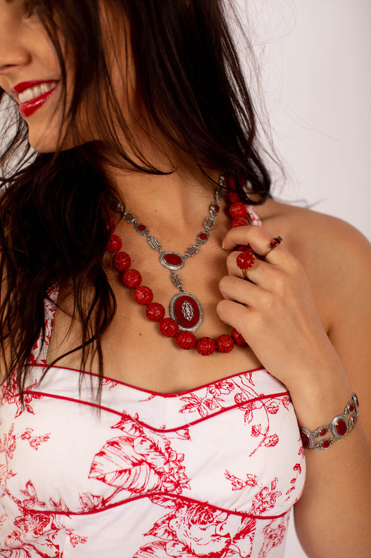 Vintage 1960s Pyrope Red Rose Cut Garnet, 900 Silver Cluster Ring Size 4.5