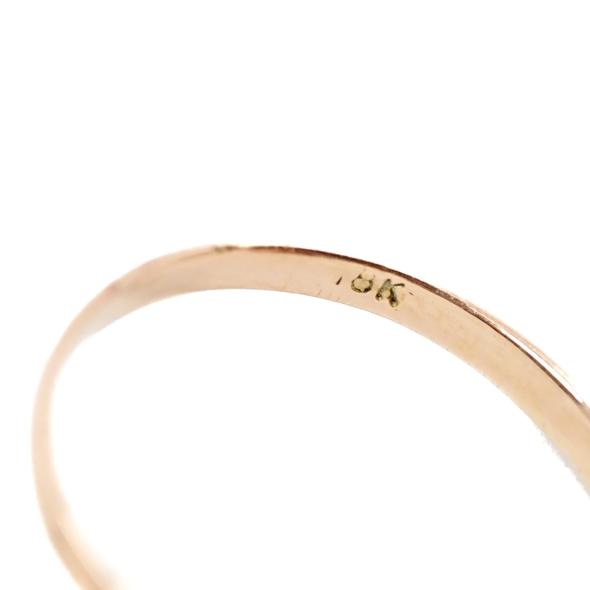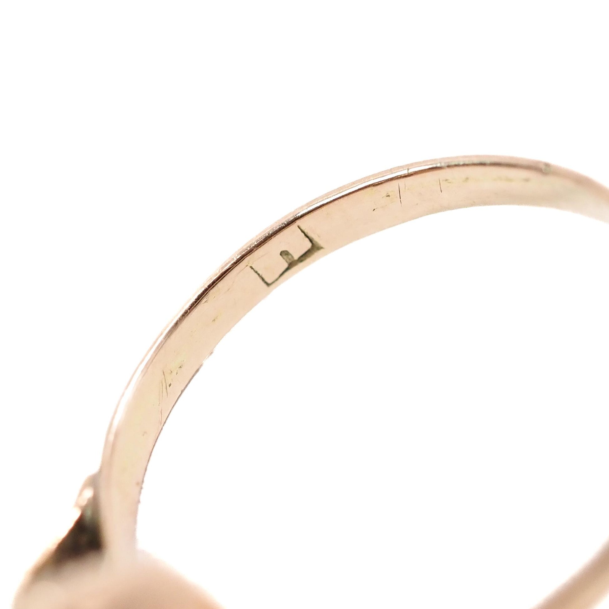 The ring is in very good antique condition with minimal signs of wear. The metal's surface shows subtle signs of wear, marks, and scratches —typical of antique pieces —and nothing noticeable or distracting. The coral has no chips or cracks and is securely set. The shank is stamped 18K and a maker‘s mark.