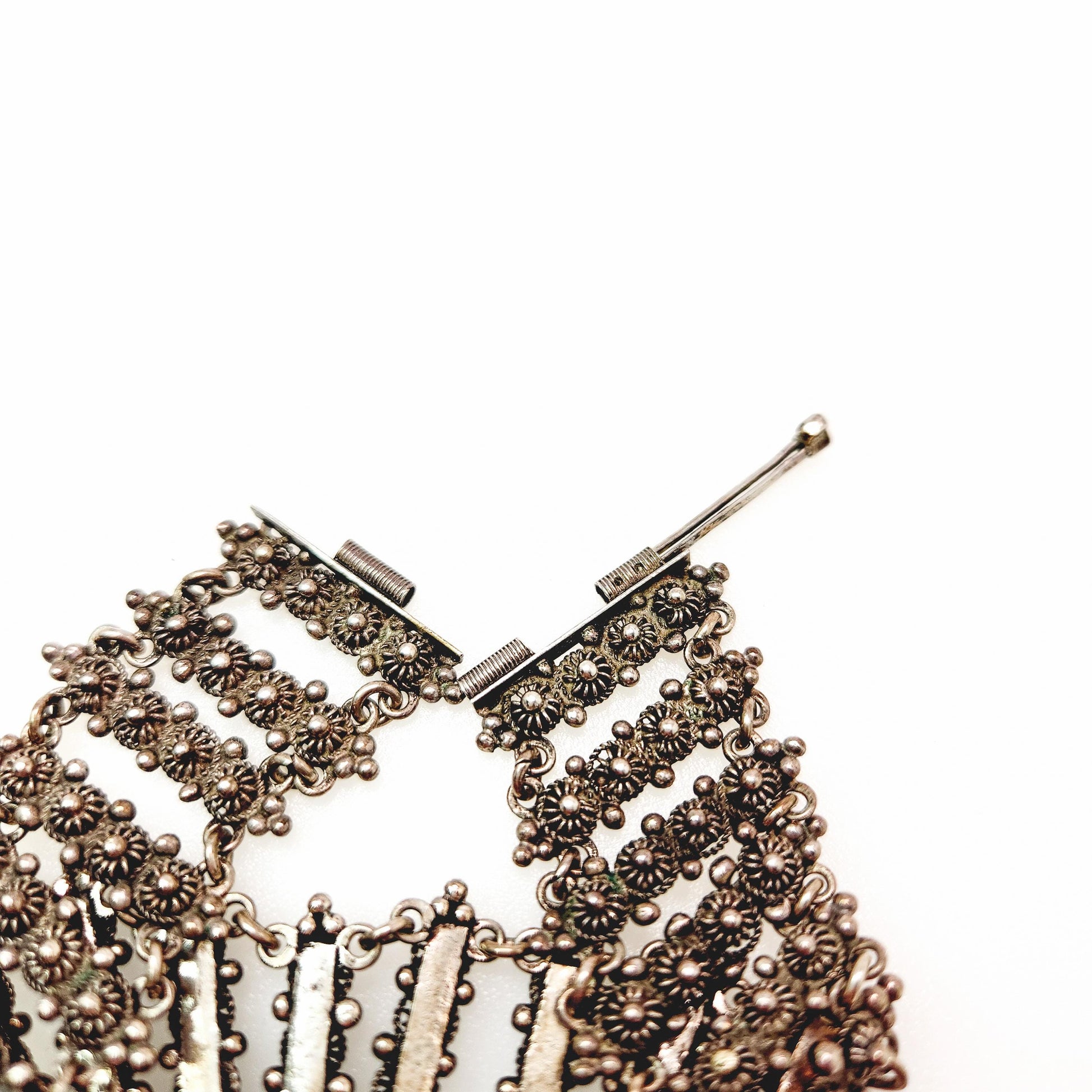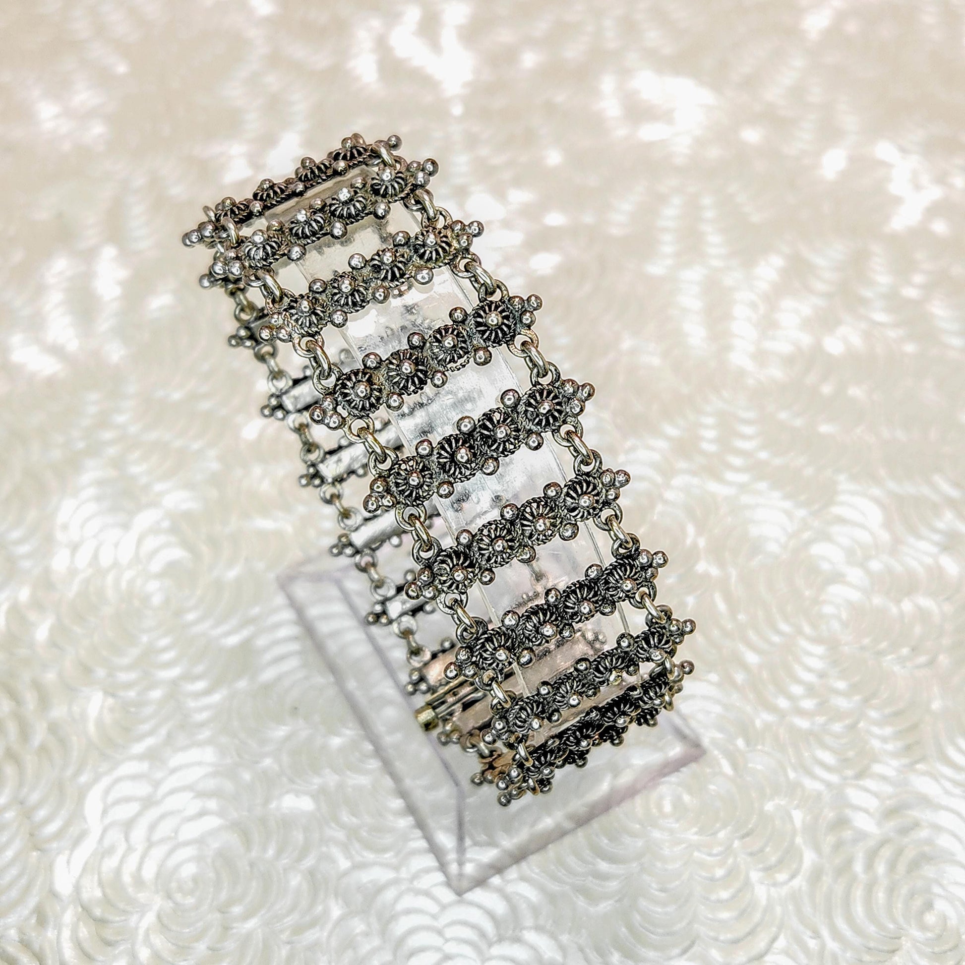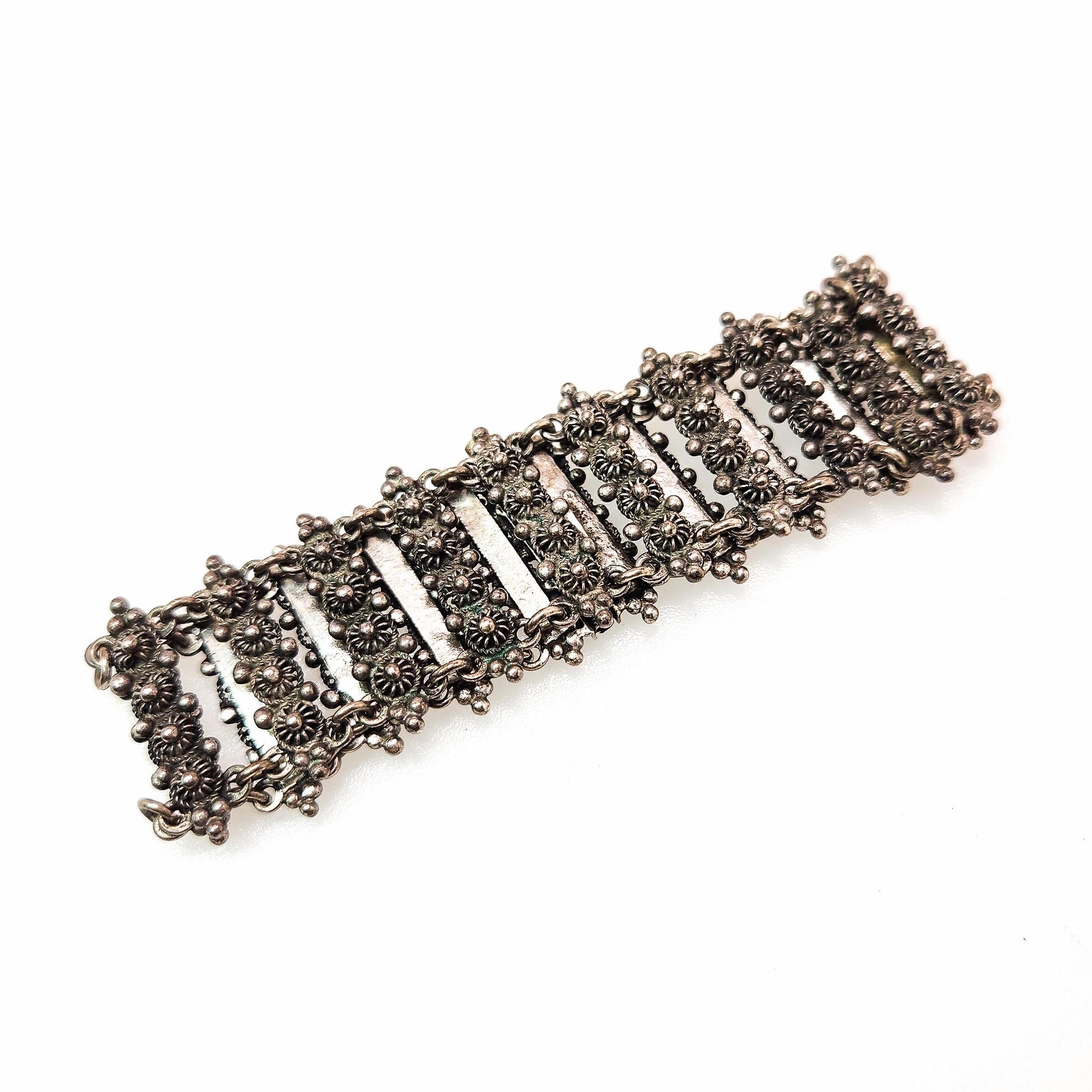Antique 1880s Mid Victorian Etruscan Revival 835 Silver Statement Cannetille Silver Link 7" Bracelet