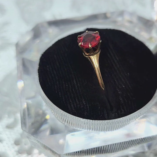 Antique 1900s Edwardian 10K Yellow Gold and Red Glass Solitaire Ring Size 8.25