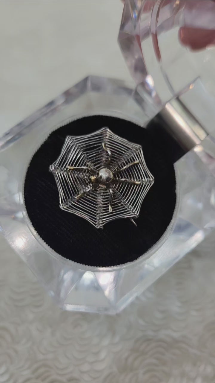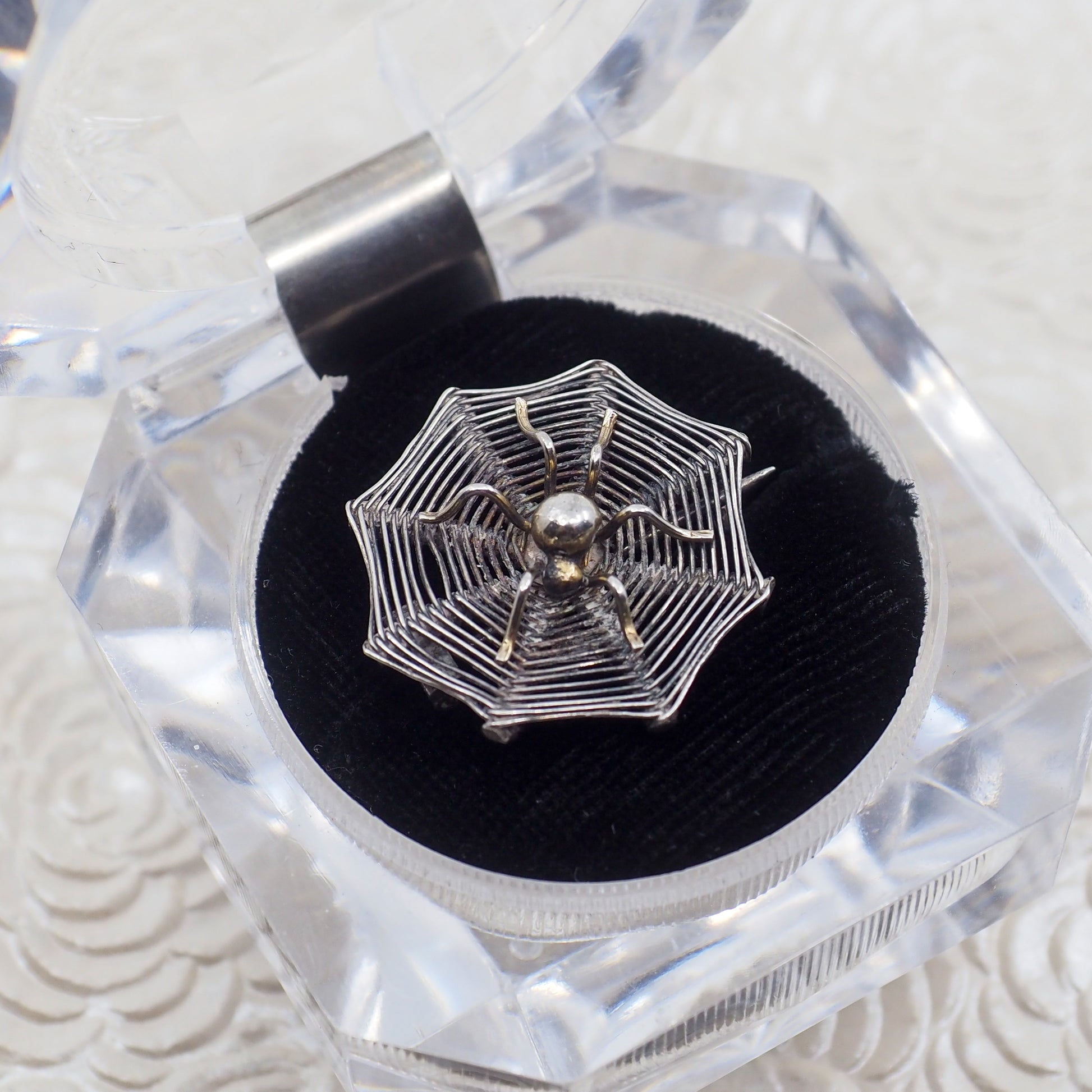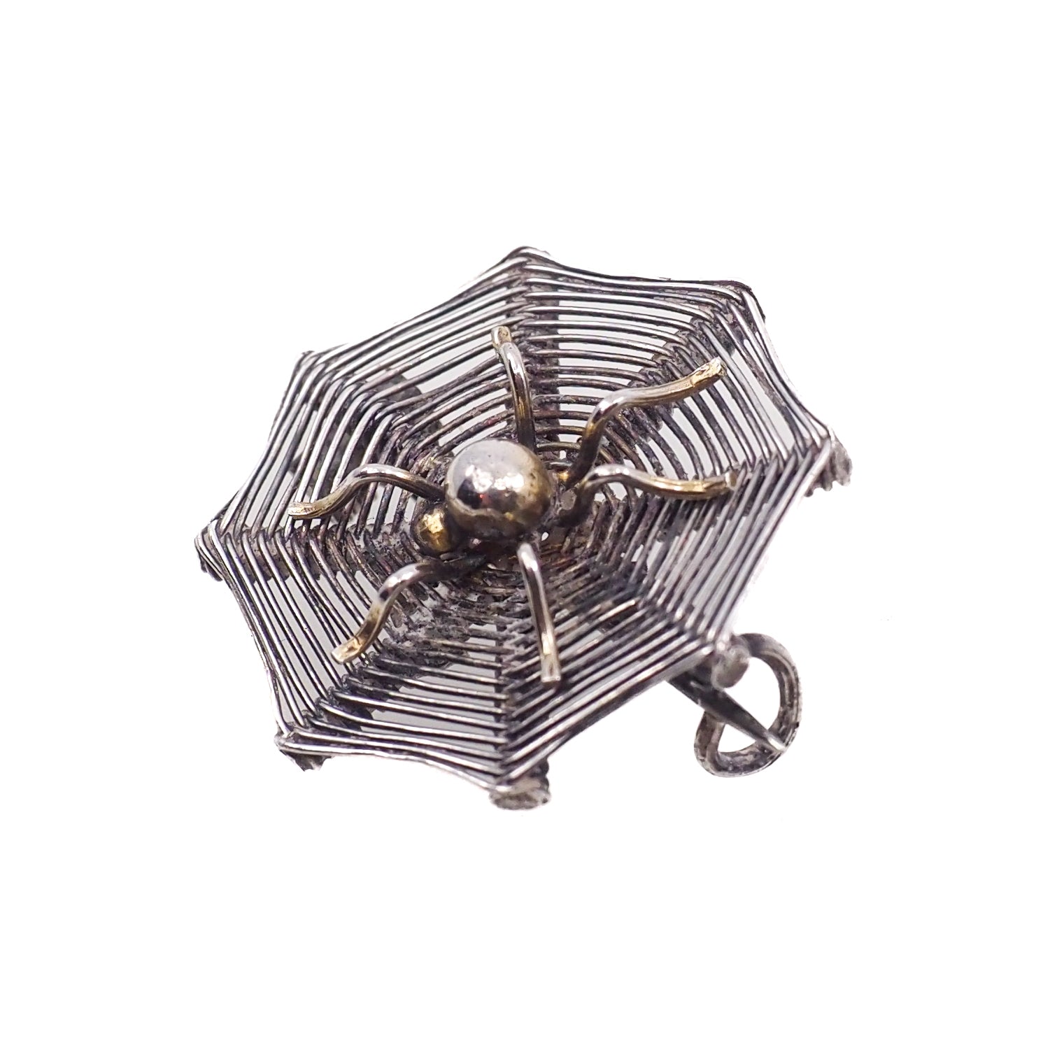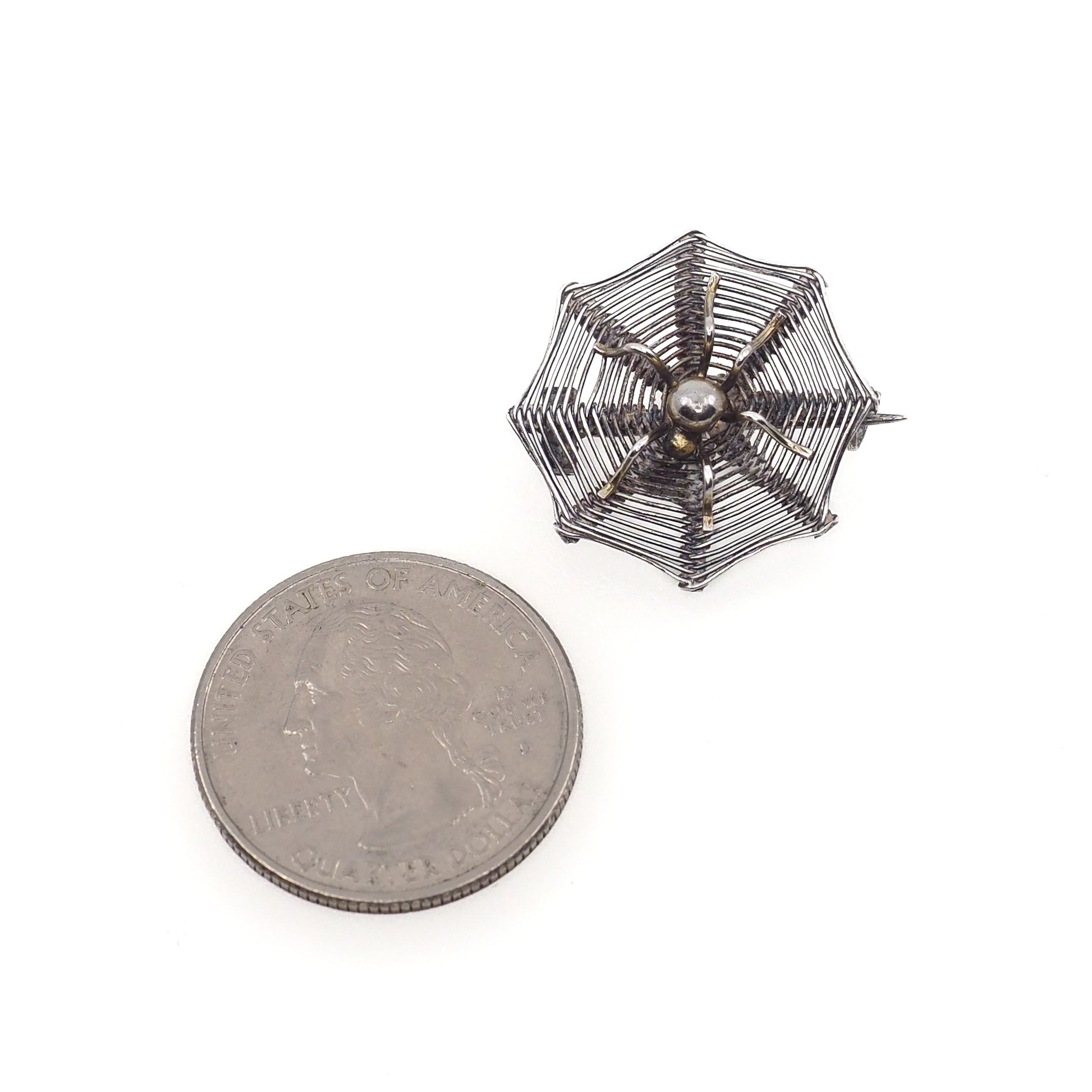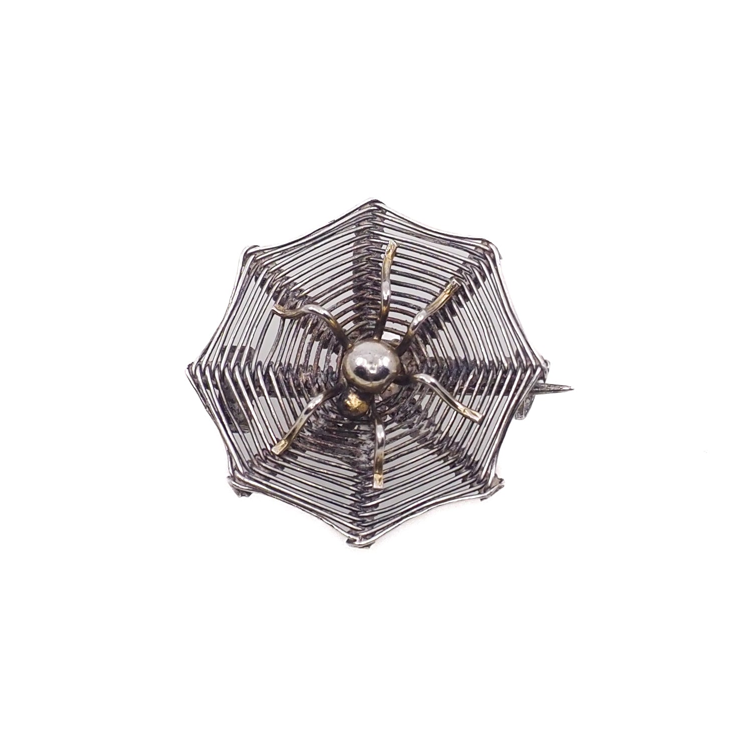 Antique 1900s Late Victorian 800 Silver Spider in Web Halloween Brooch