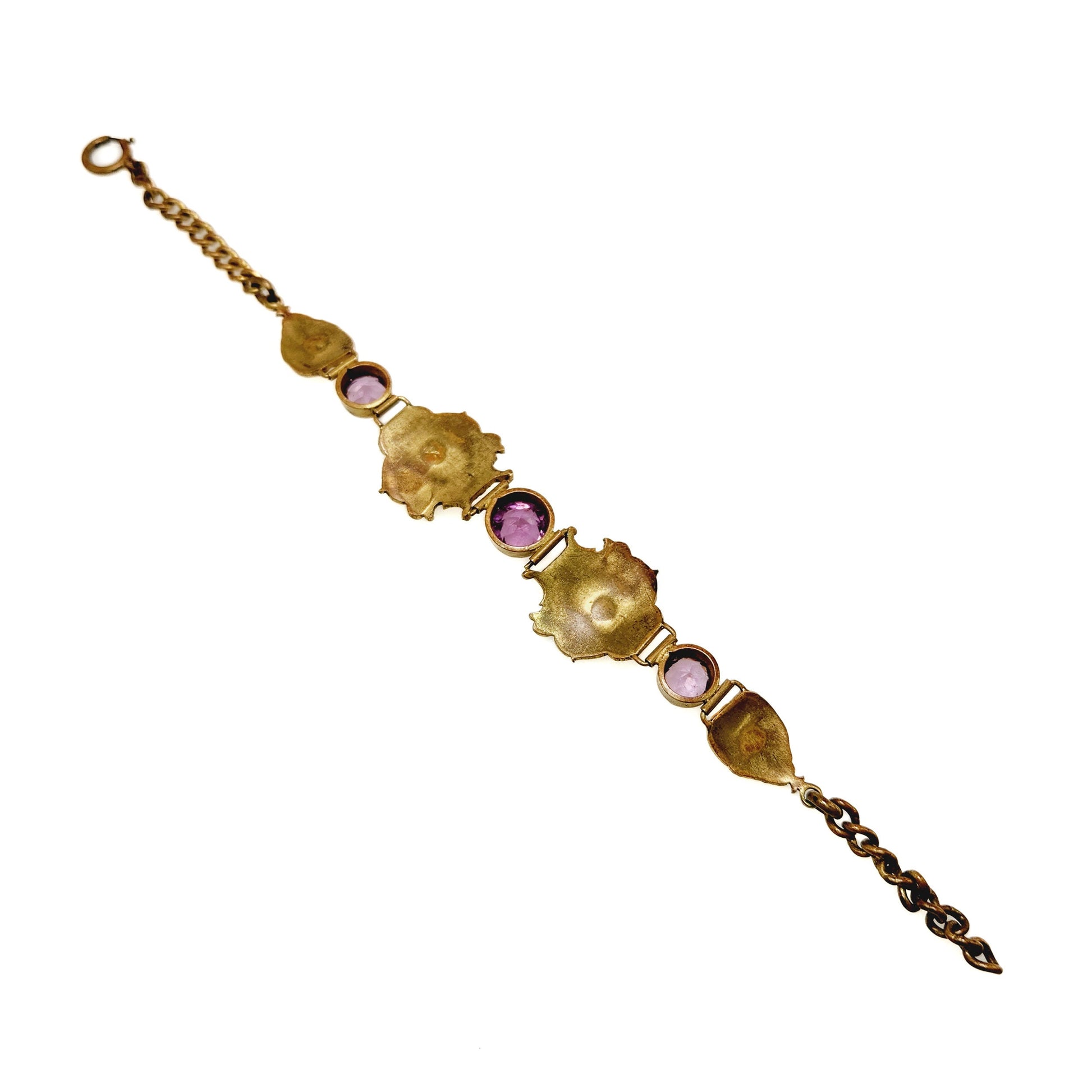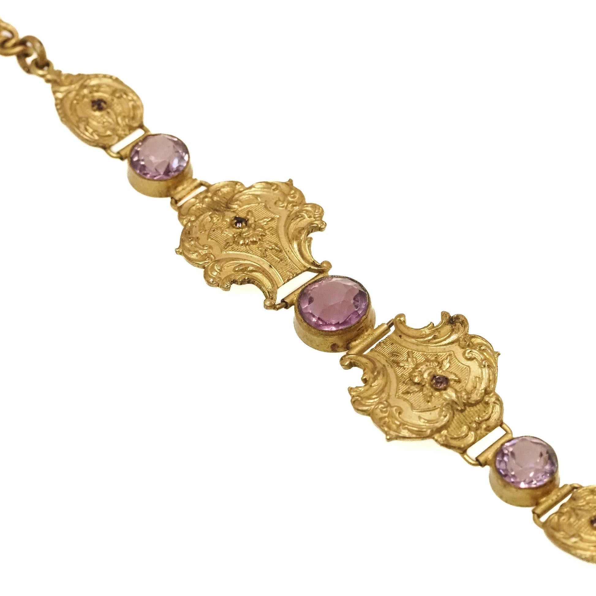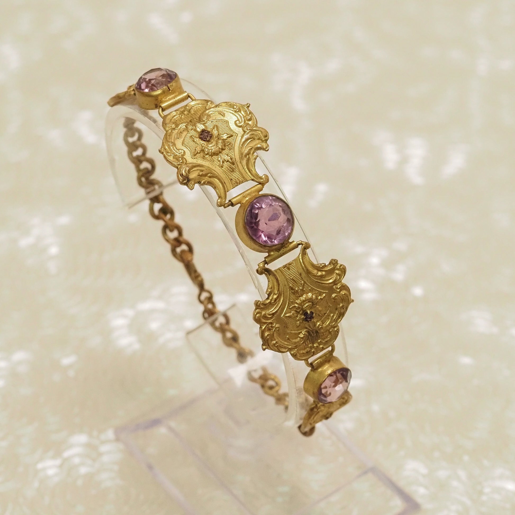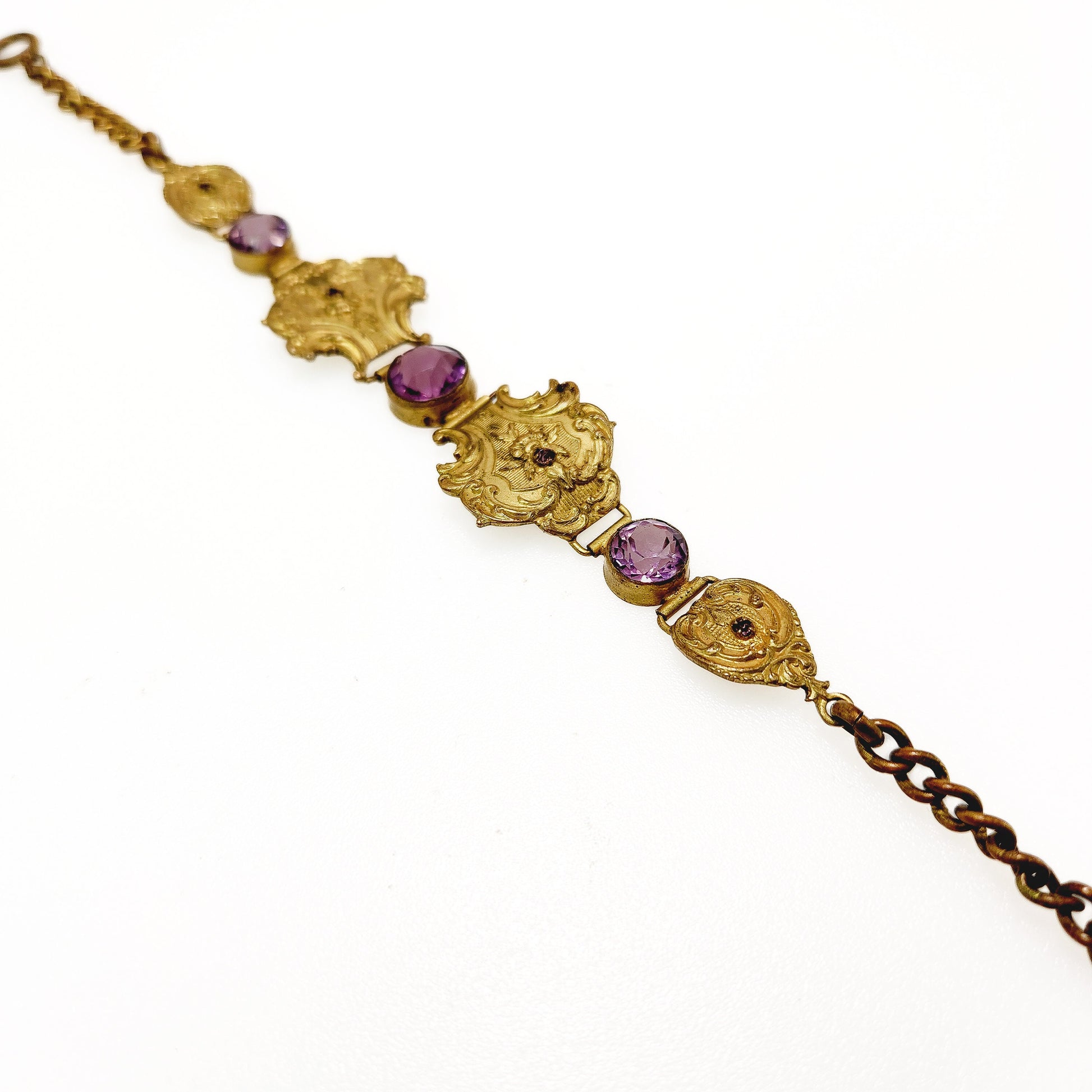 Antique 1900s Late Victorian Purple Glass and Gold-Filled 7.75" Bracelet