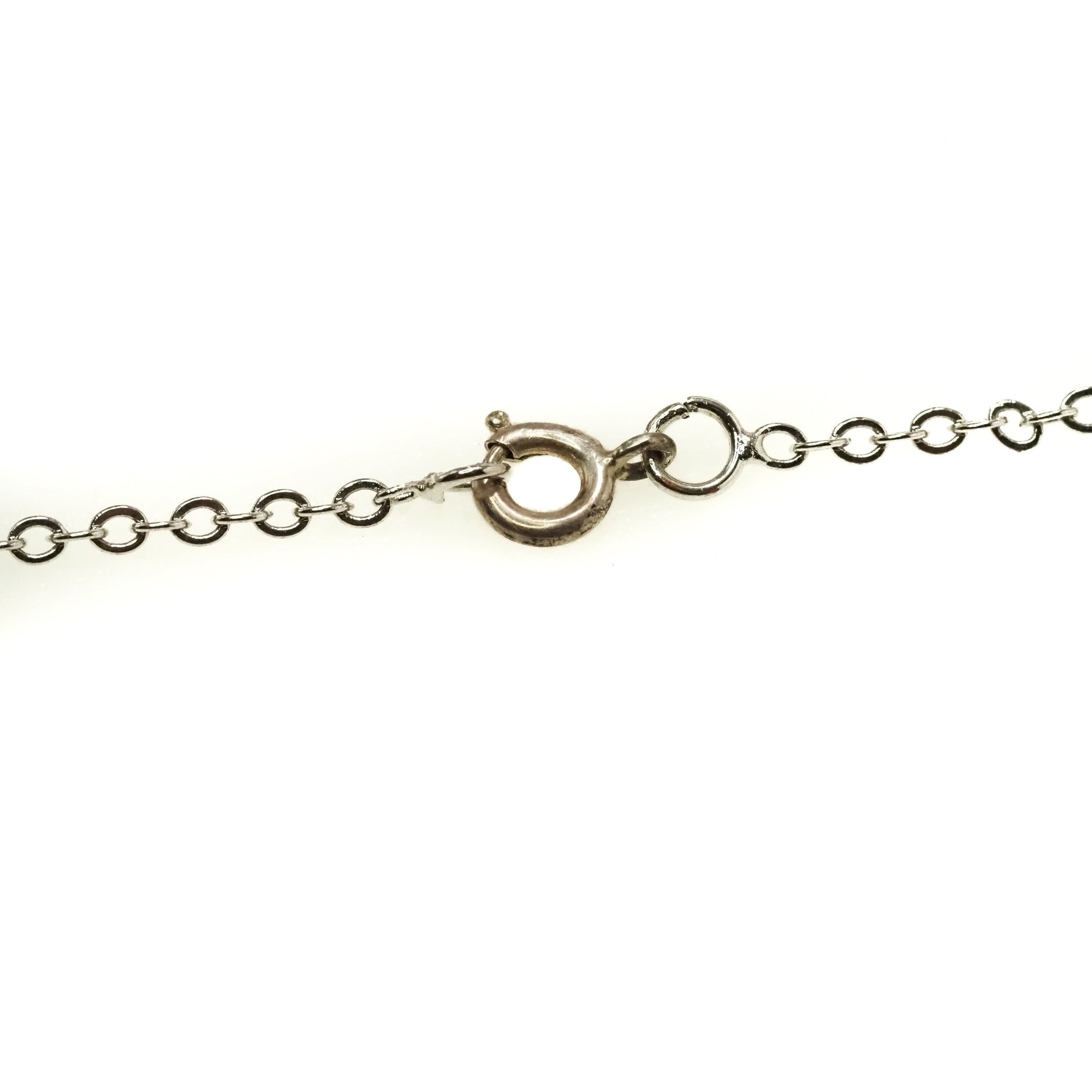 The necklace is in very good antique condition with minimal signs of wear. The metal and glass surface has minor signs of light wear, typical of antique jewelry. The filigree is not bent or broken, and the glass and gold plate are intact. The paper link chain is not twisted or kinked, and the spring ring clasp is fully functional.
