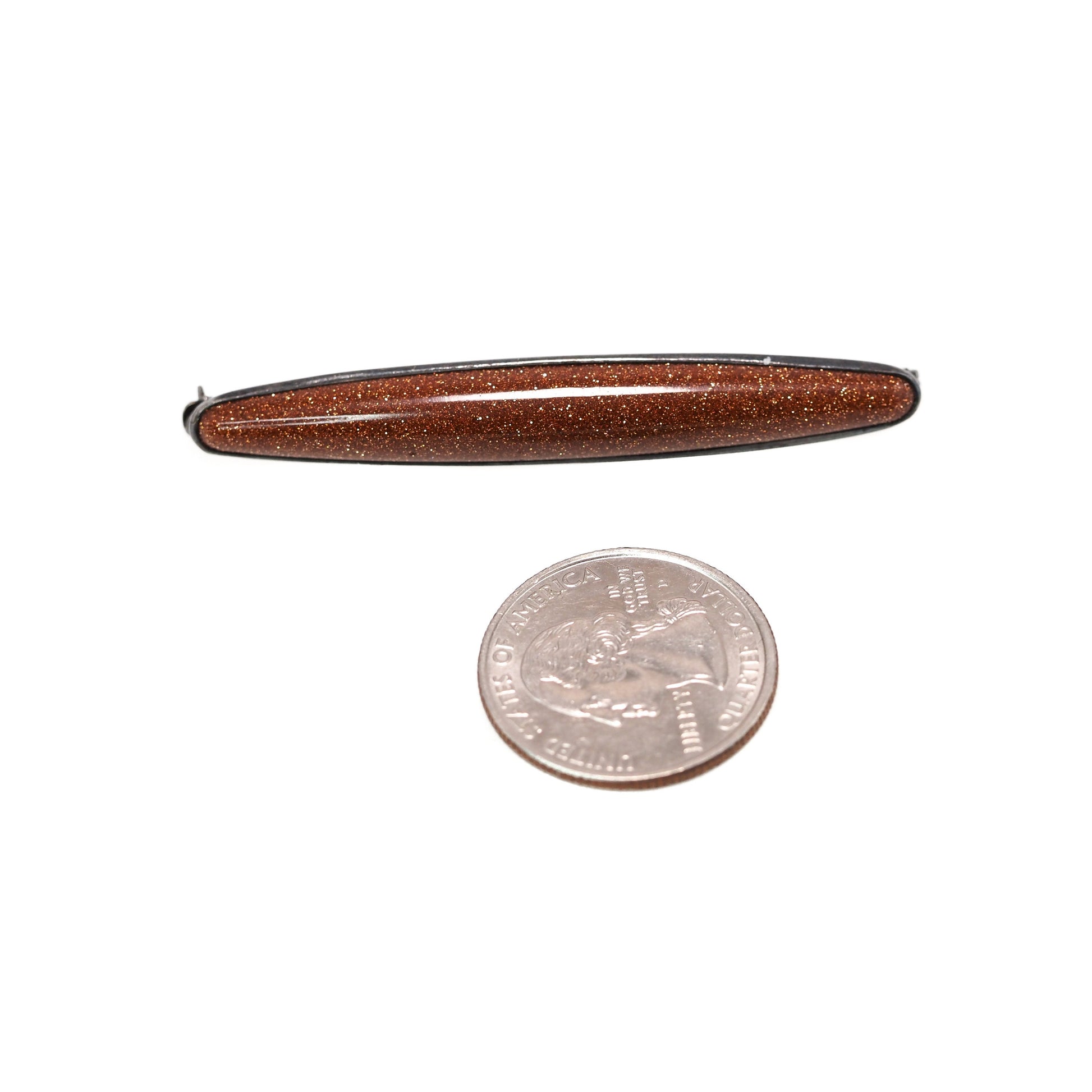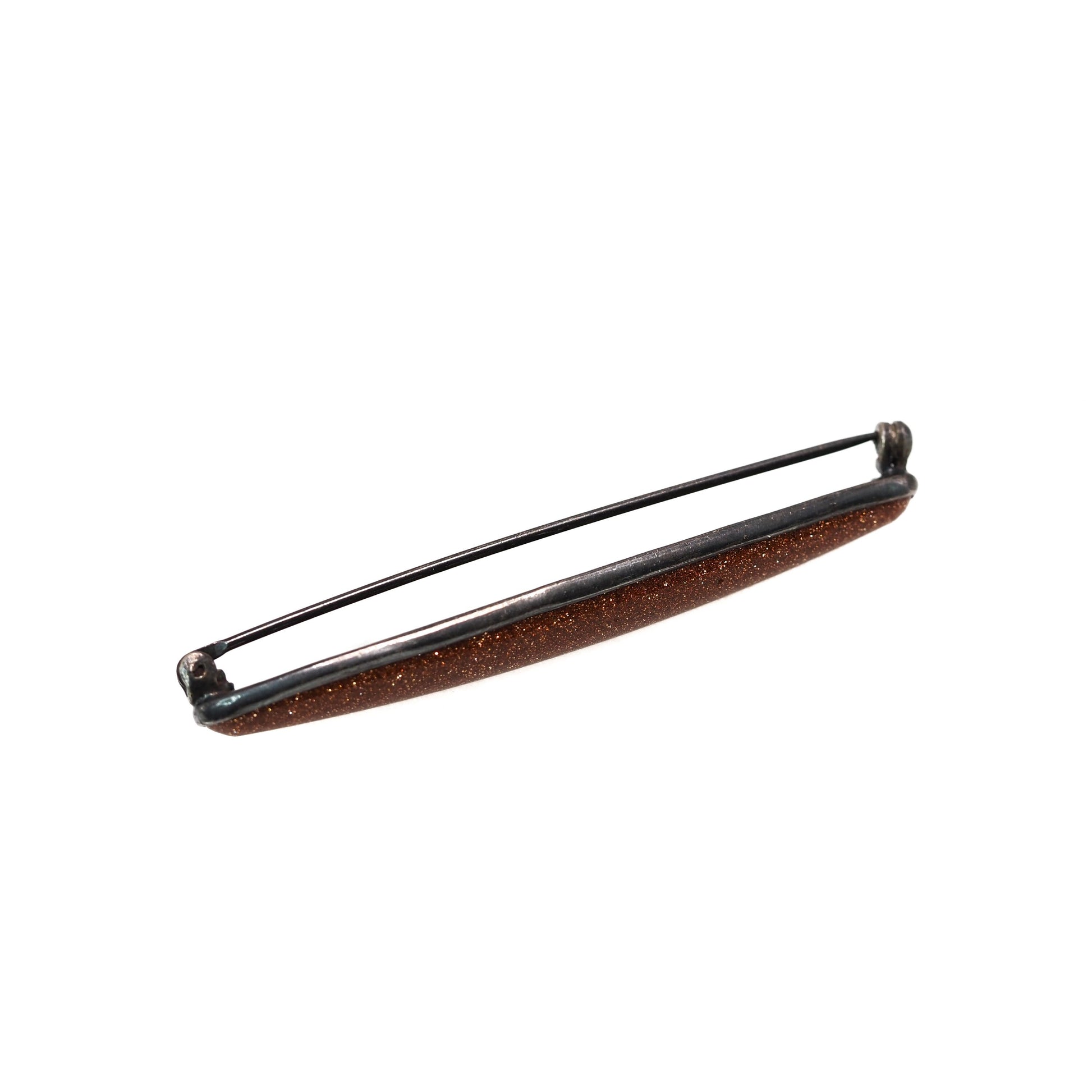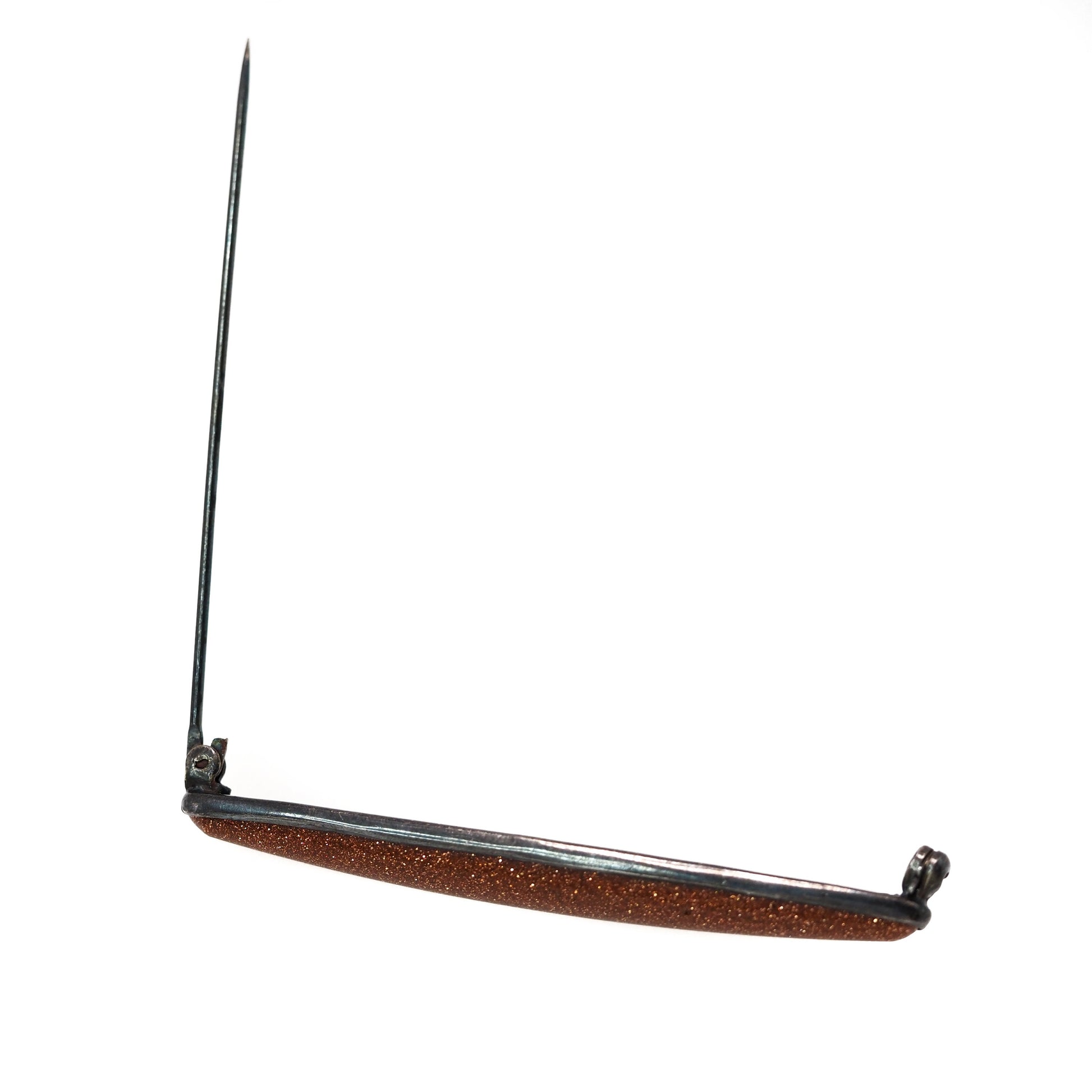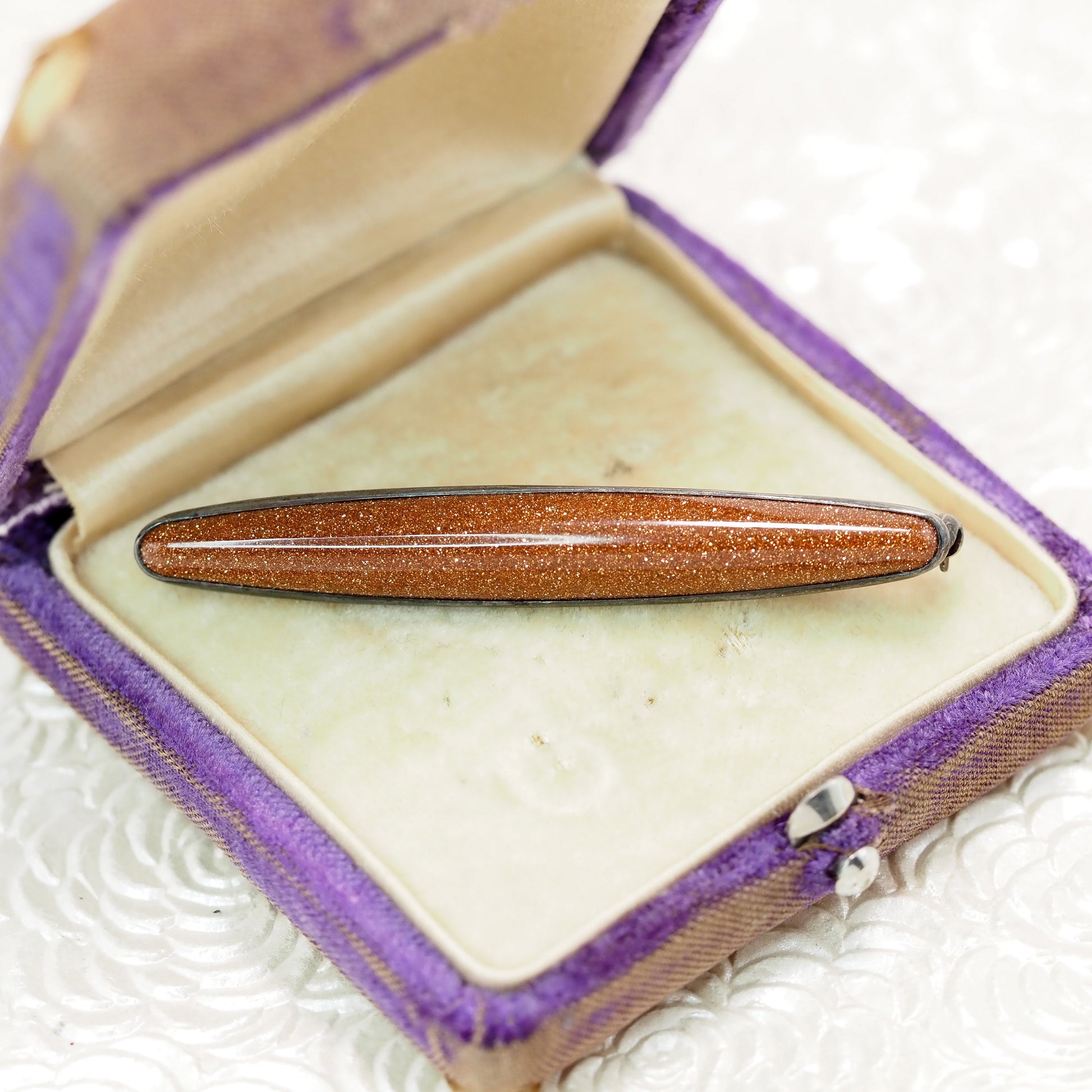 Antique 1920s Brown Goldstone Glass and Sterling Silver Unisex Bar Pin