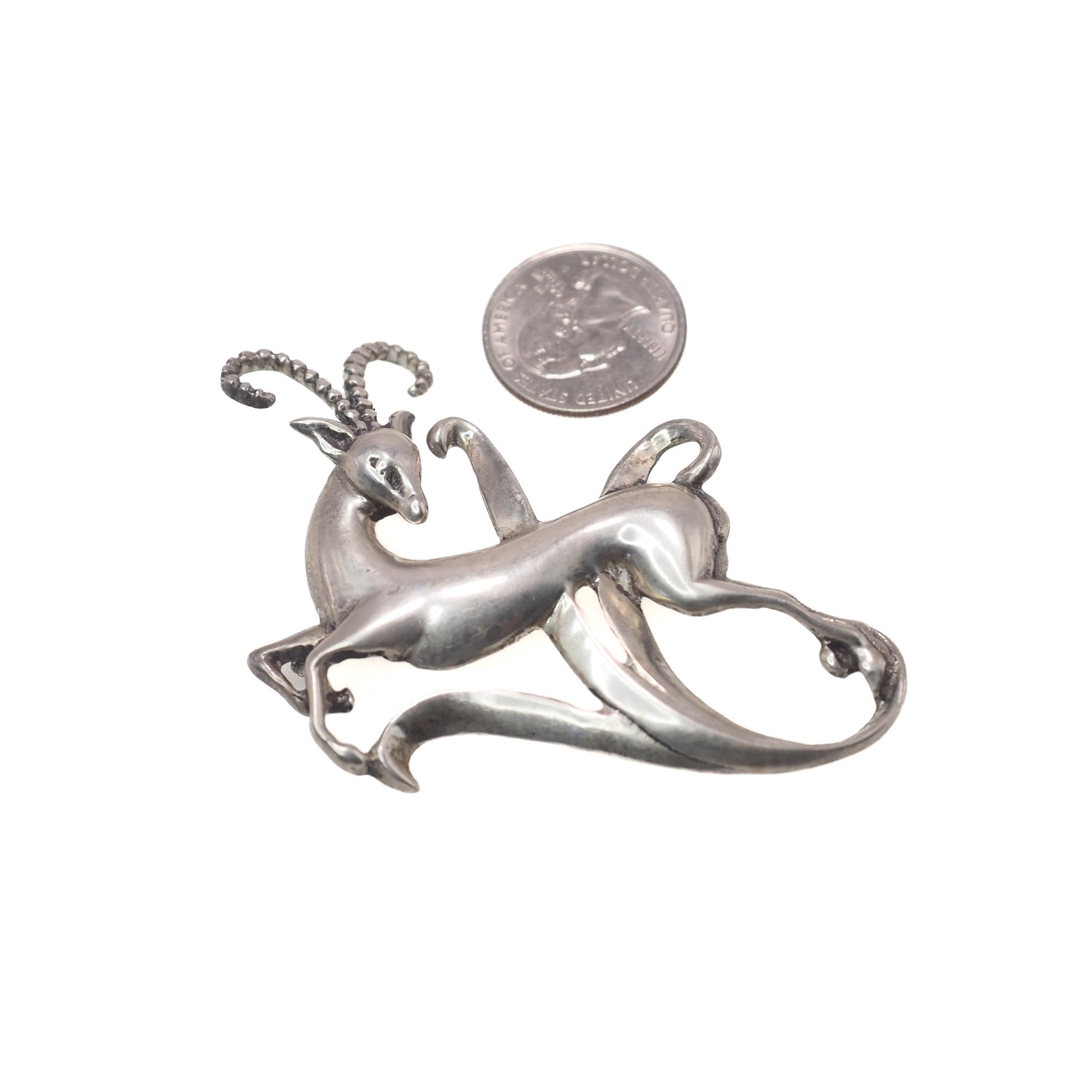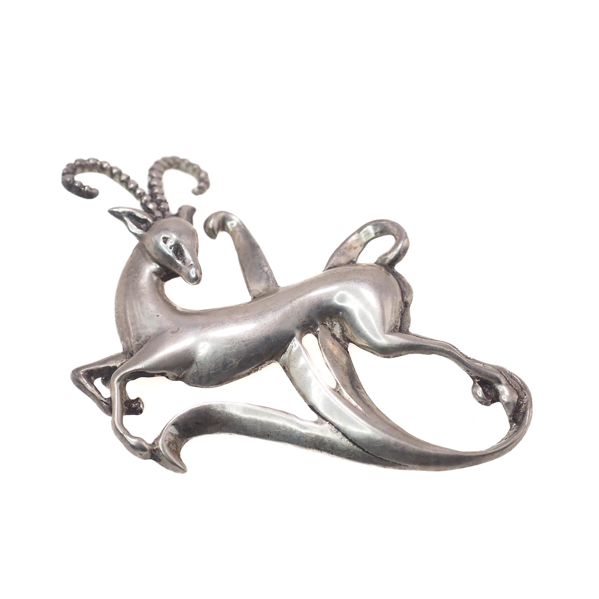 Antique 1920s Large Sterling Silver Antelope Animal Brooch