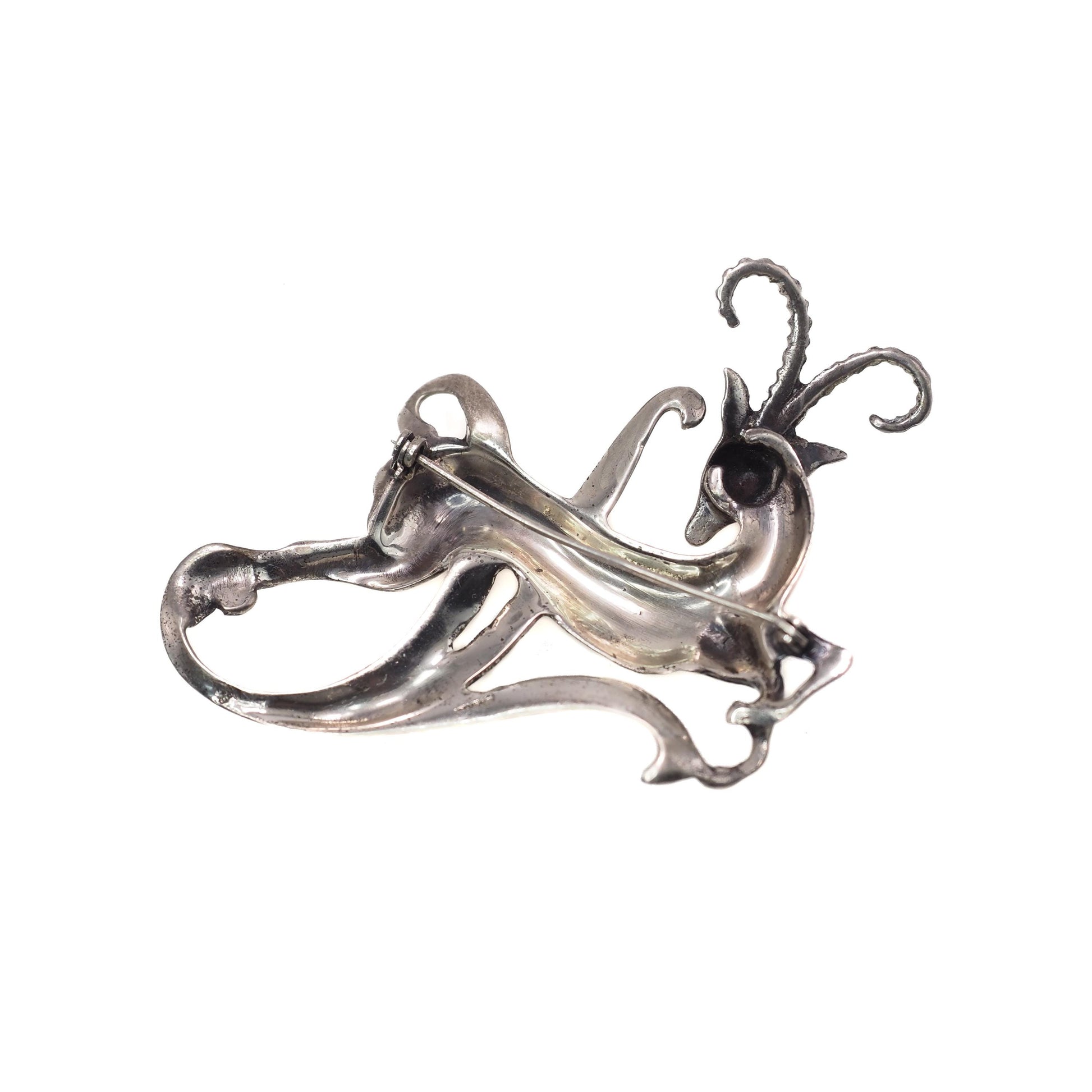 Get ready to roar with this highly detailed sterling silver antelope brooch made in the 1920s. The antelope looks like it‘s running, and the pin has a wonderful sense of movement. It‘s a beautiful antique brooch to add to your collection!