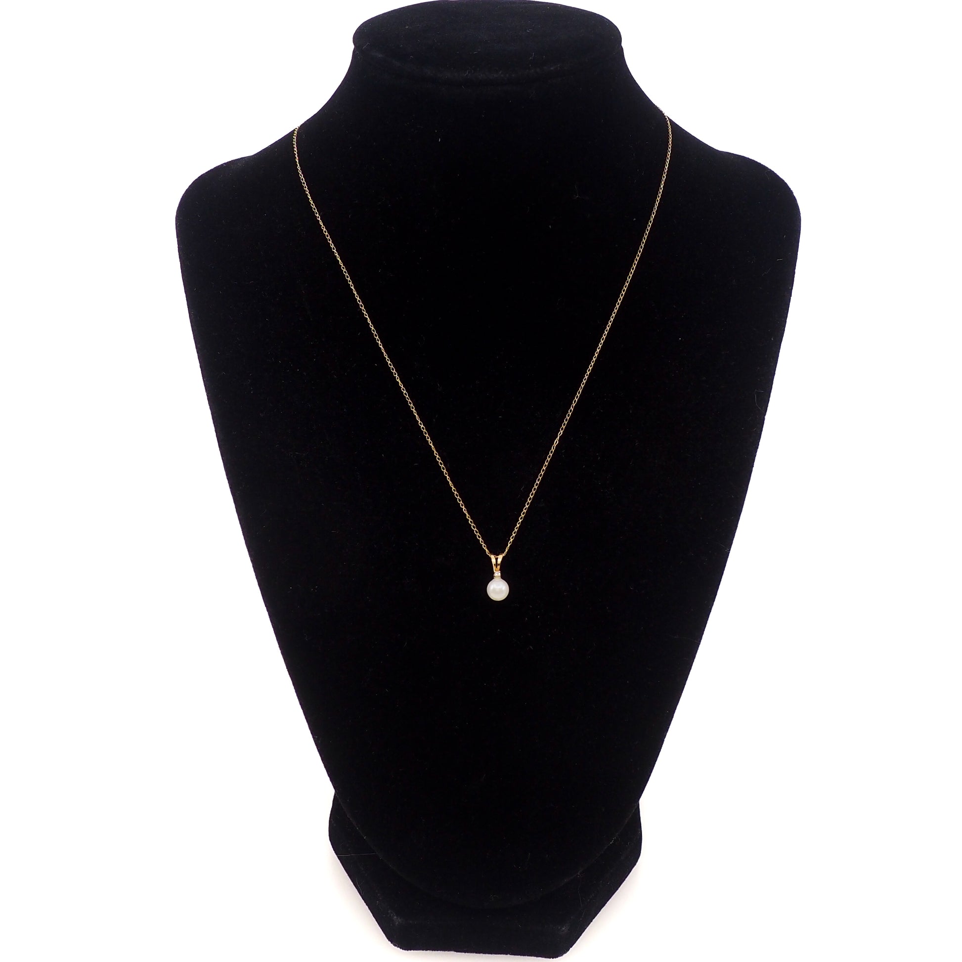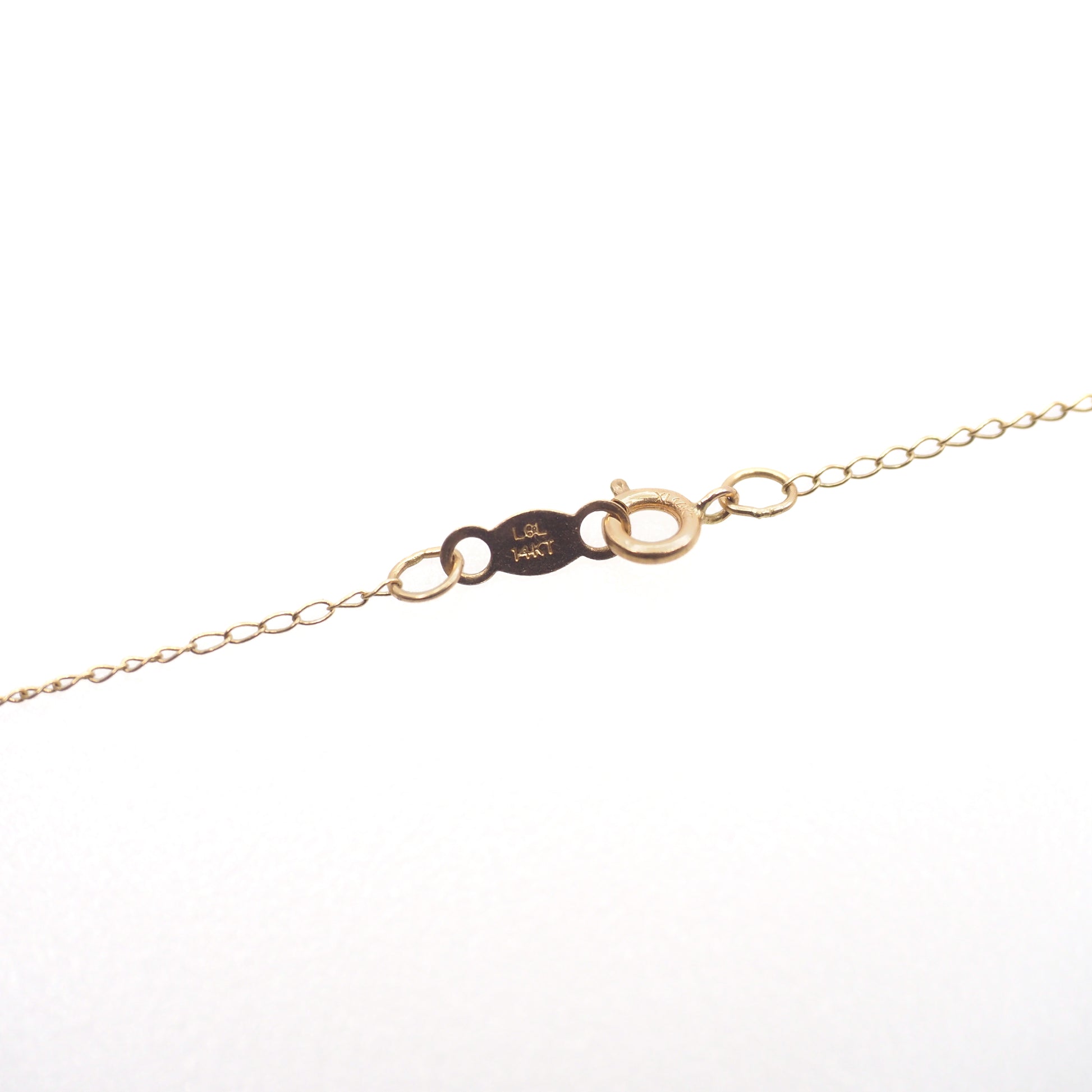 The necklace is in very good vintage condition with minimal signs of wear. The surface of the pearl, the nacre, is nice and thick and does not have any scuff marks or scratches. The chain is stamped '14K' and hallmarked 'LGL'.
