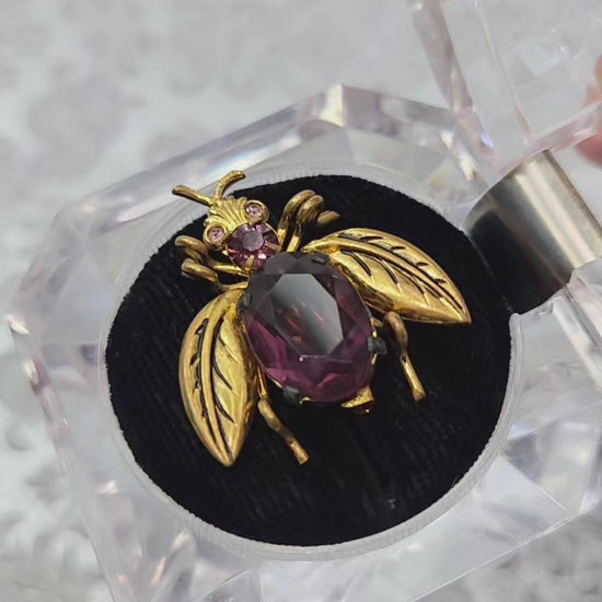 Vintage 1930s Czechoslovakia Purple Brass and Glass Fly Bug Brooch