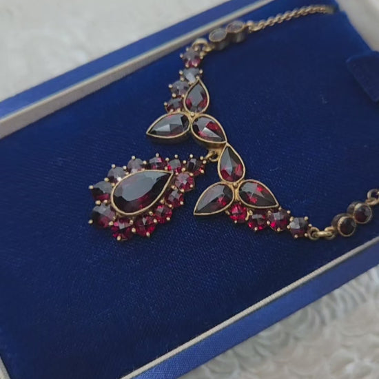 Vintage 1930s Red Bohemian Garnet Drop Choker Gilt 17" Necklace