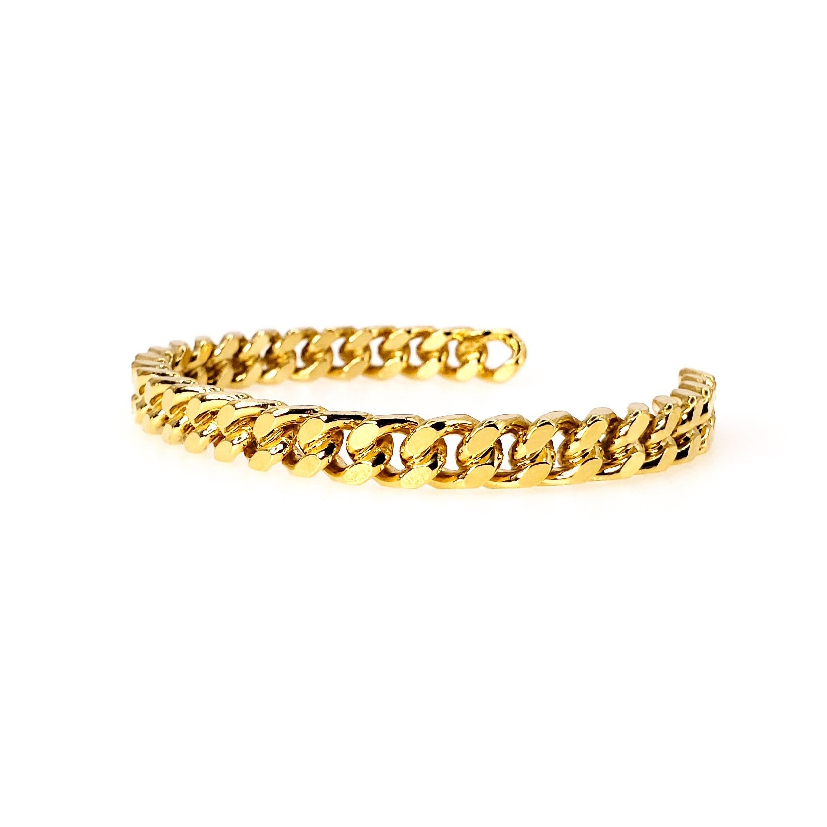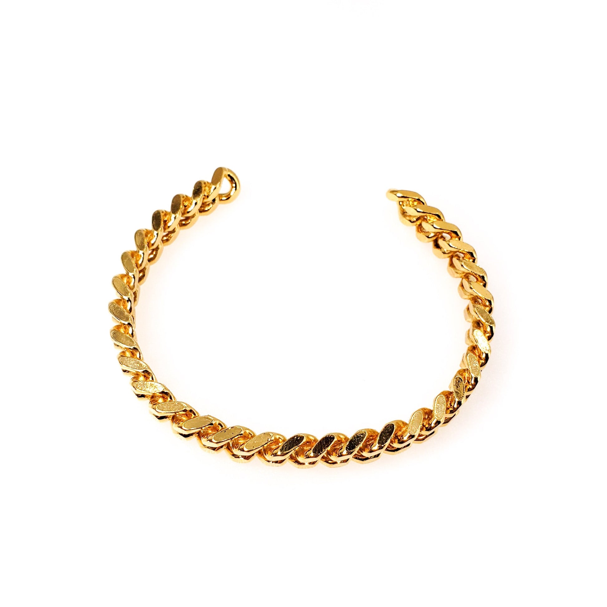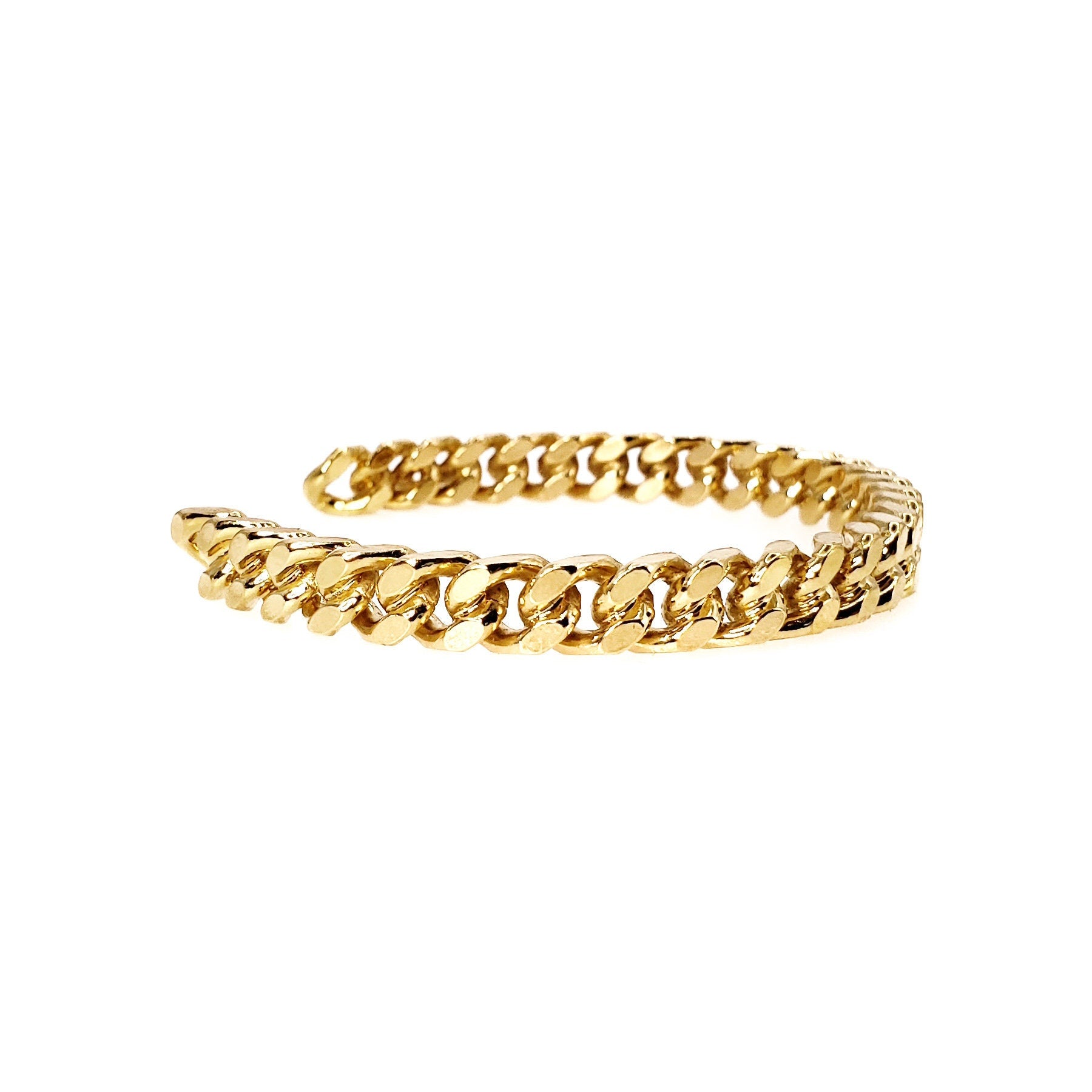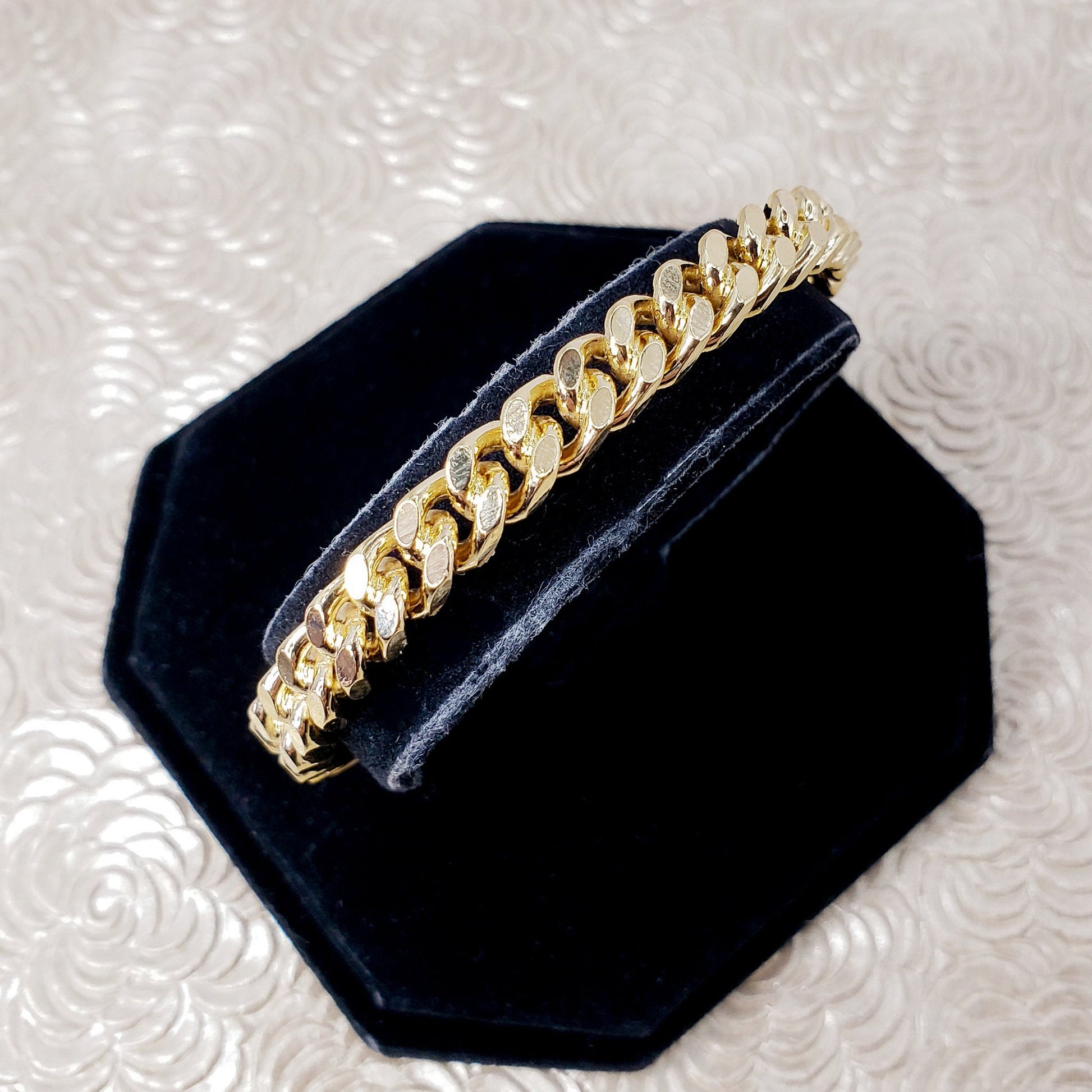 The bracelet is in very good condition for its age, with minimal signs of wear. The gold plate has a few tiny scratches, fine lines, and marks. The bracelet adjusts slightly, and the box is not damaged.