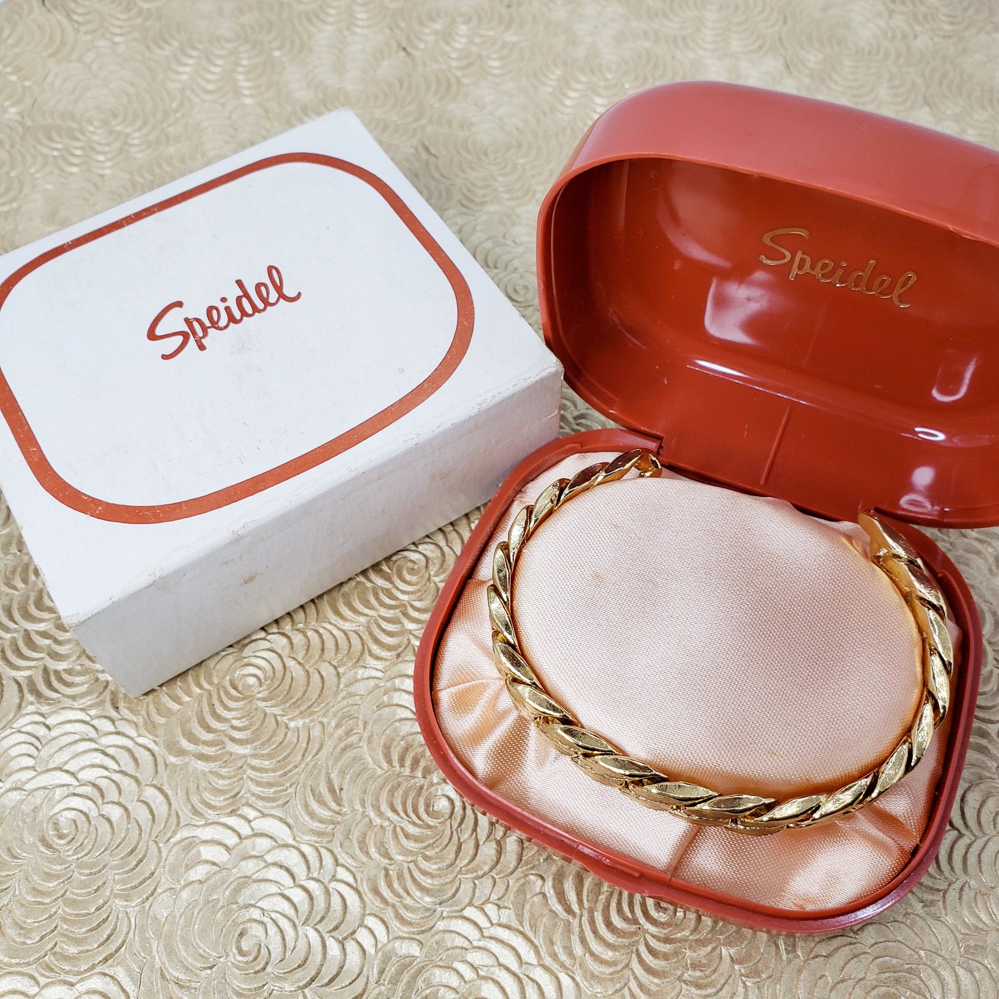 Vintage 1940s SPEIDEL Thick Gold Plate Textured Cuff 7" Bracelet with Original Box