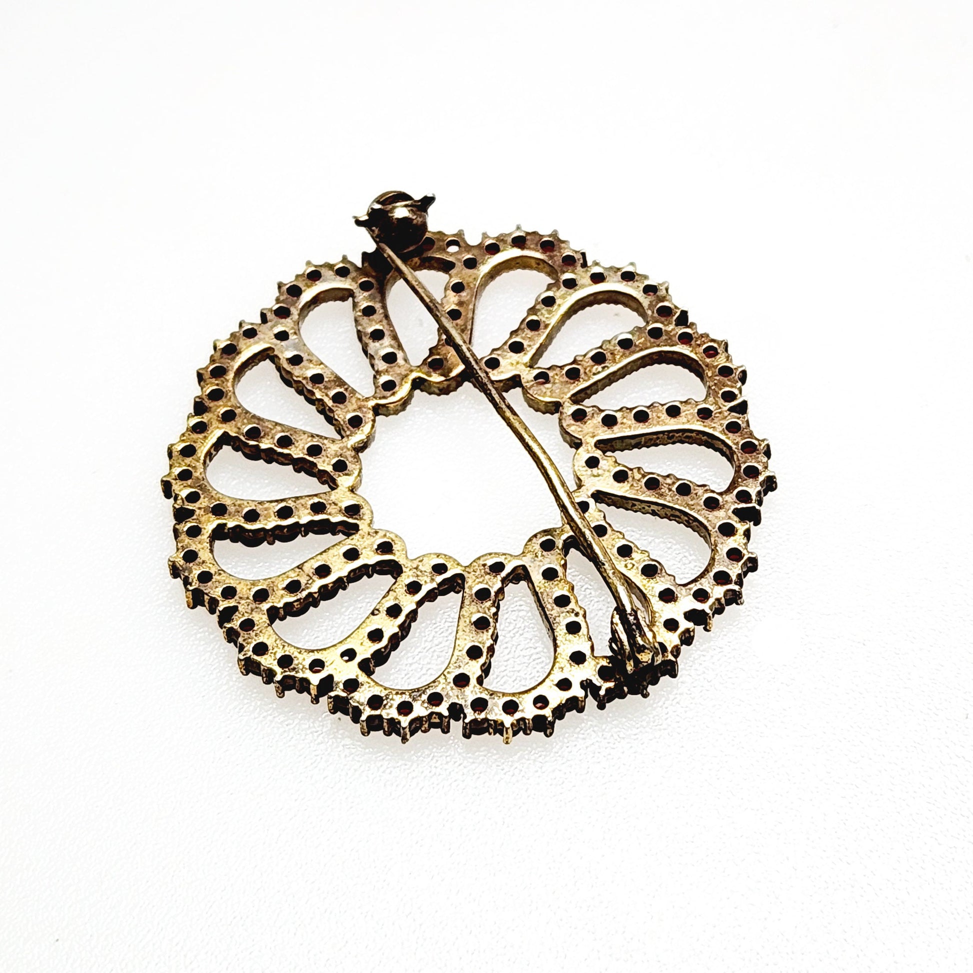 Vintage 1960s GRANAT TURNOV Bohemian Garnet and Vermeil Circle Brooch As-Is
