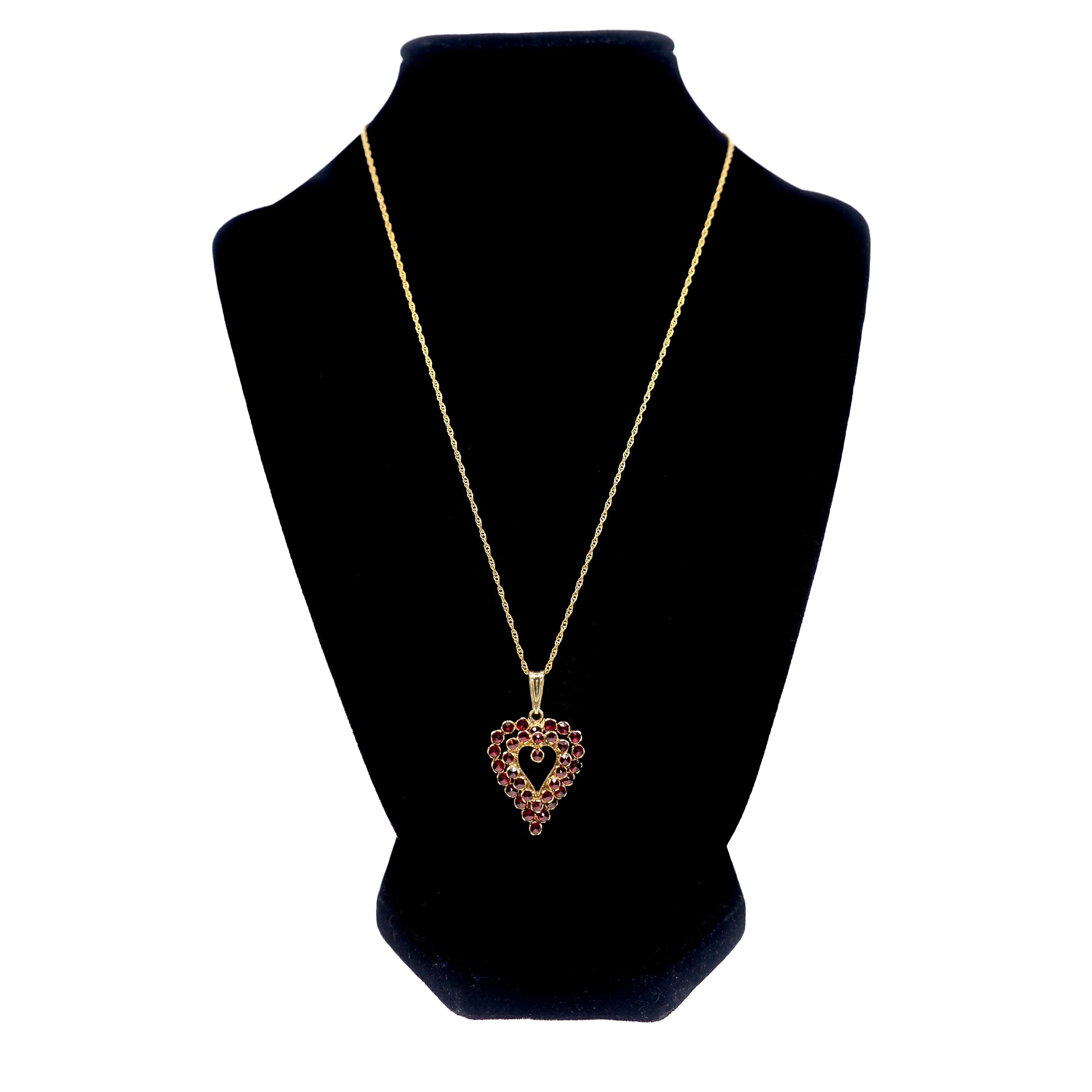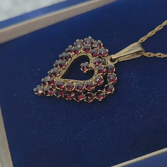 Vintage 1960s GRANAT TURNOV Bohemian Garnet and Vermeil Heart Pendant 18" Necklace