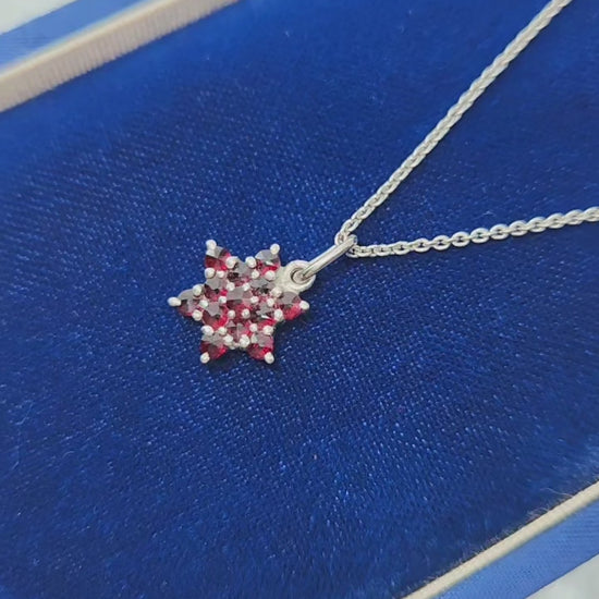 Vintage 1960s GRANAT TURNOV Bohemian Garnet Star Cluster Pendant 20" Necklace