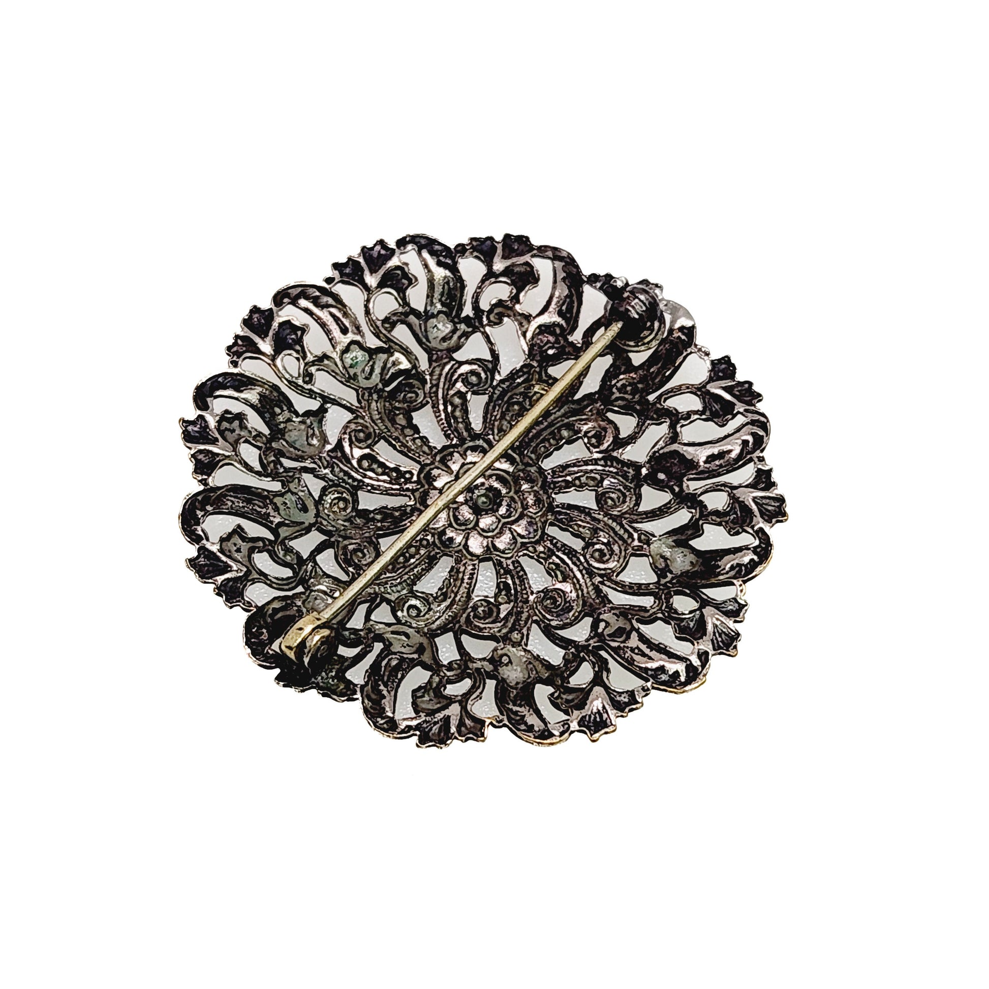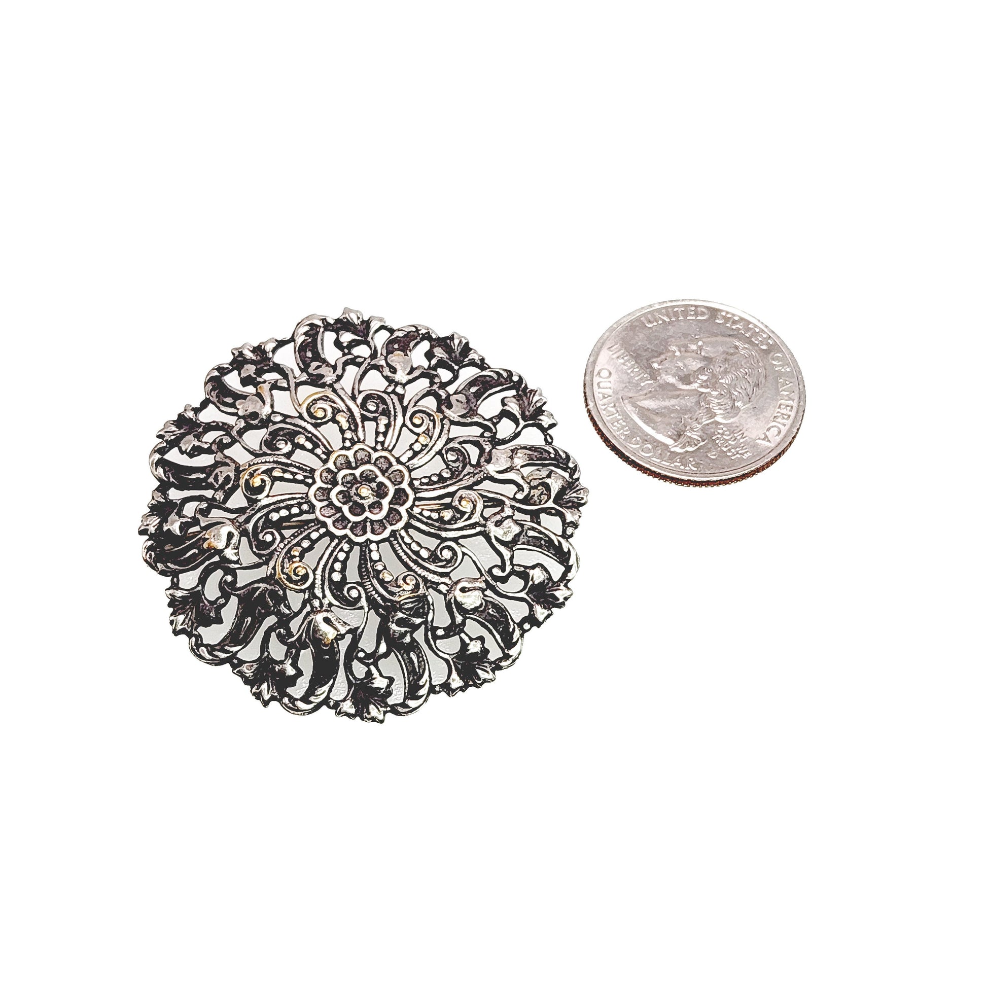 Vintage 1960s Large Ornate Medieval Revival Flower Silver Plated Statement Brooch