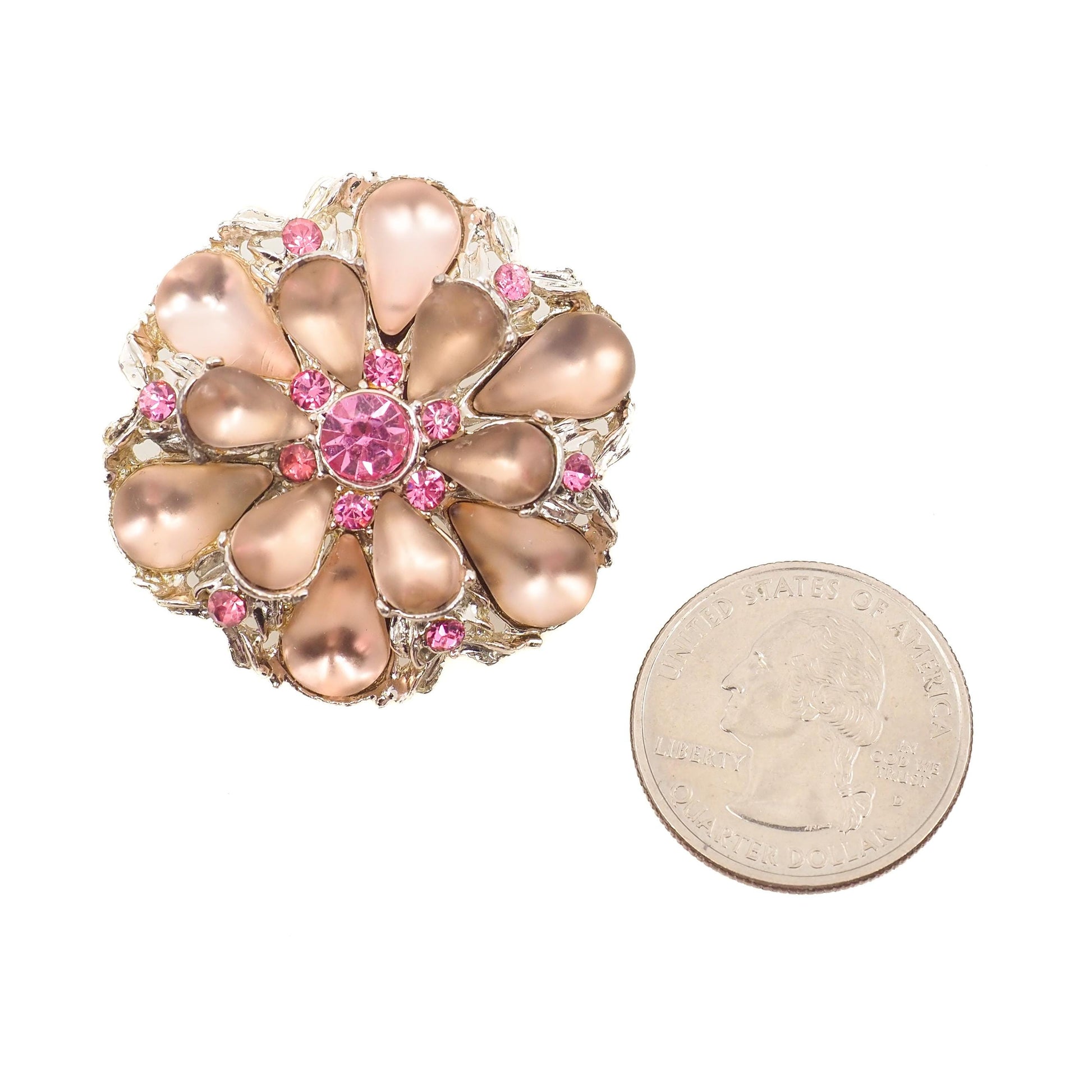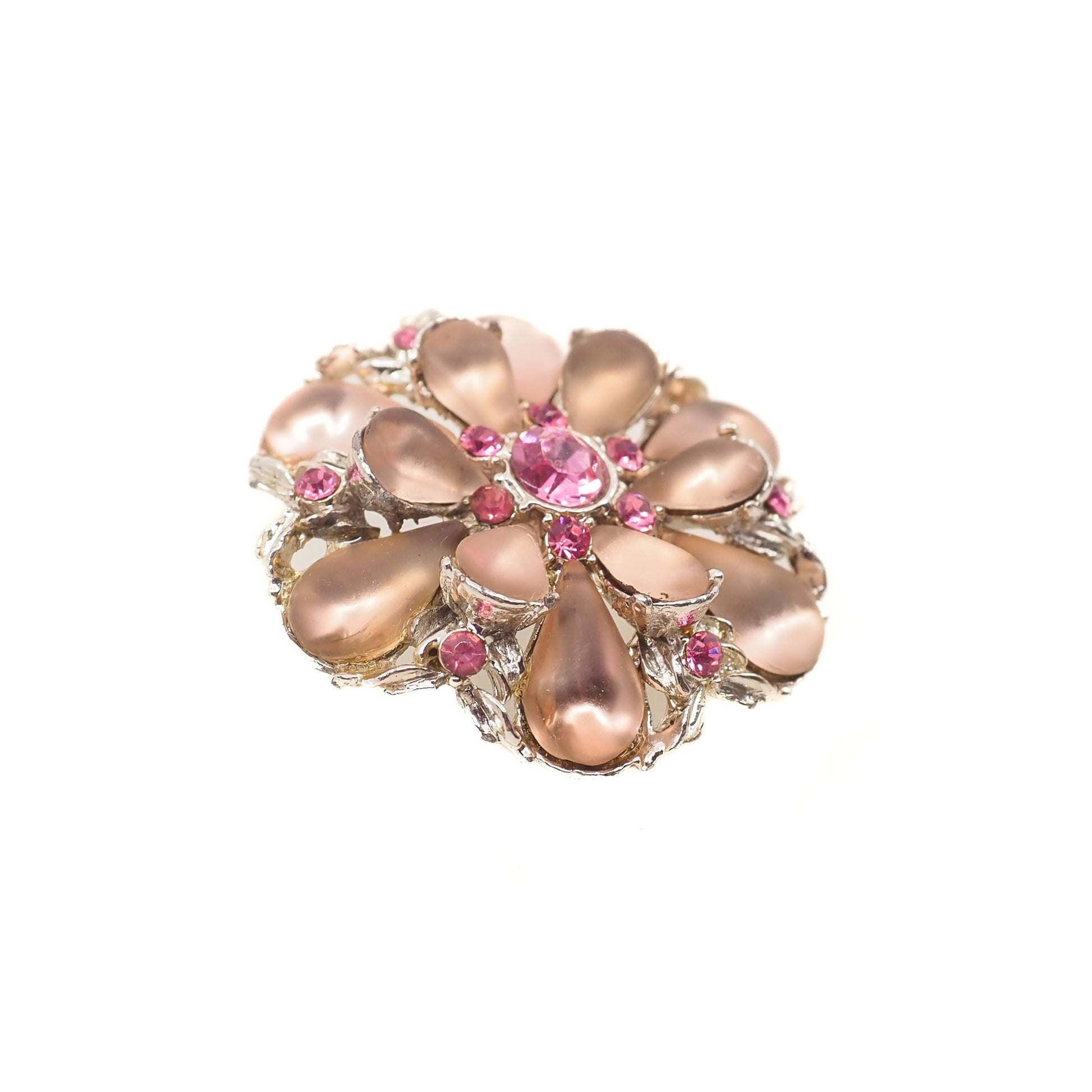 Vintage 1960s Pink and Fuchsia Rhinestone Cabochon Flower Brooch