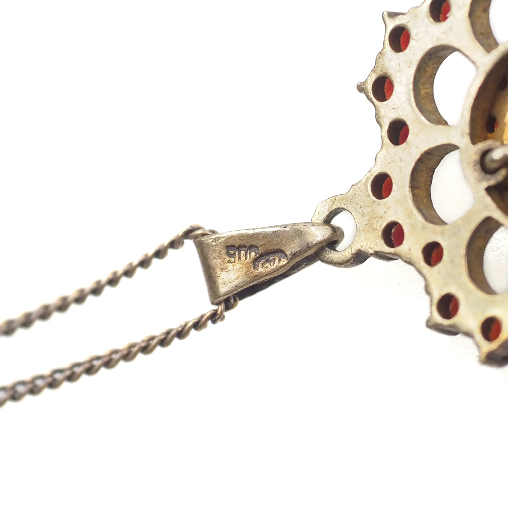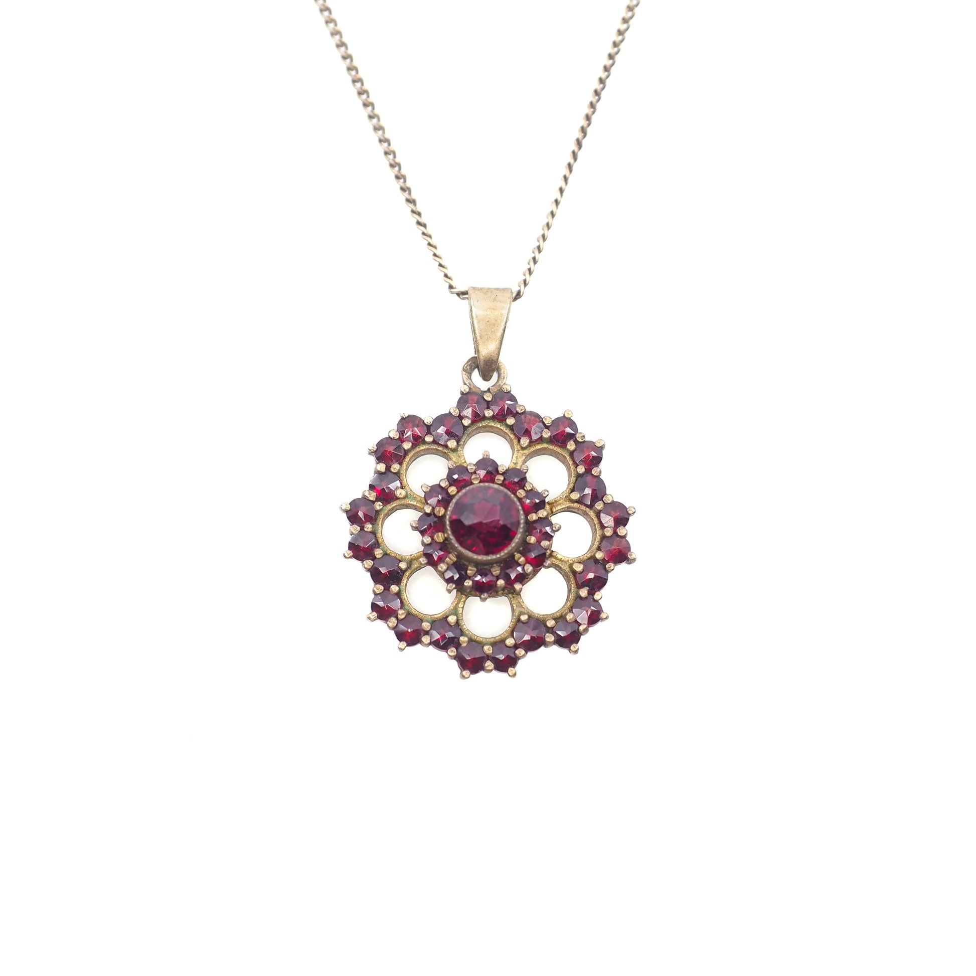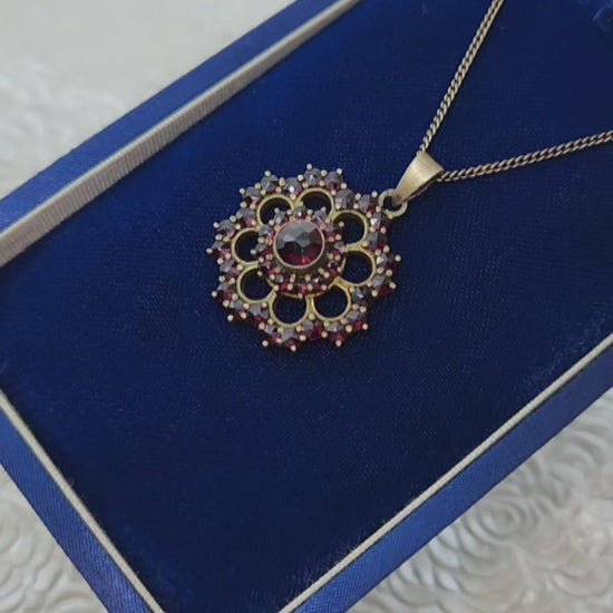Vintage 1960s Rose Cut Bohemian Garnet and Flower Pendant 18" Necklace