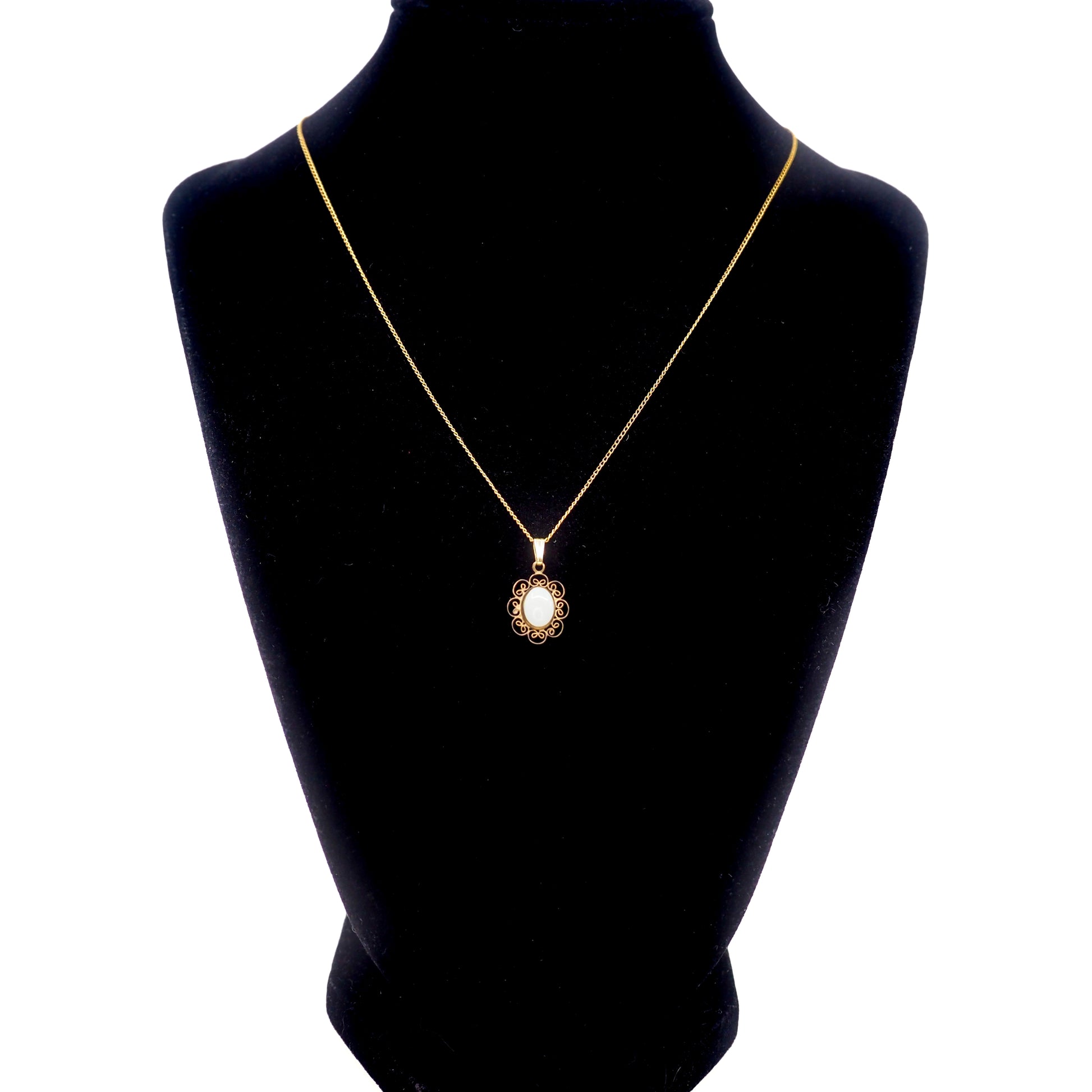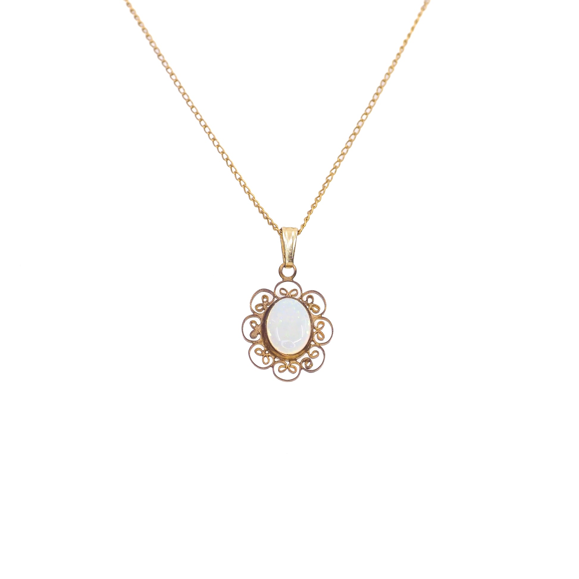 Vintage 1970s CARLA Opal Pendant Gold Filled Scroll 18" Necklace