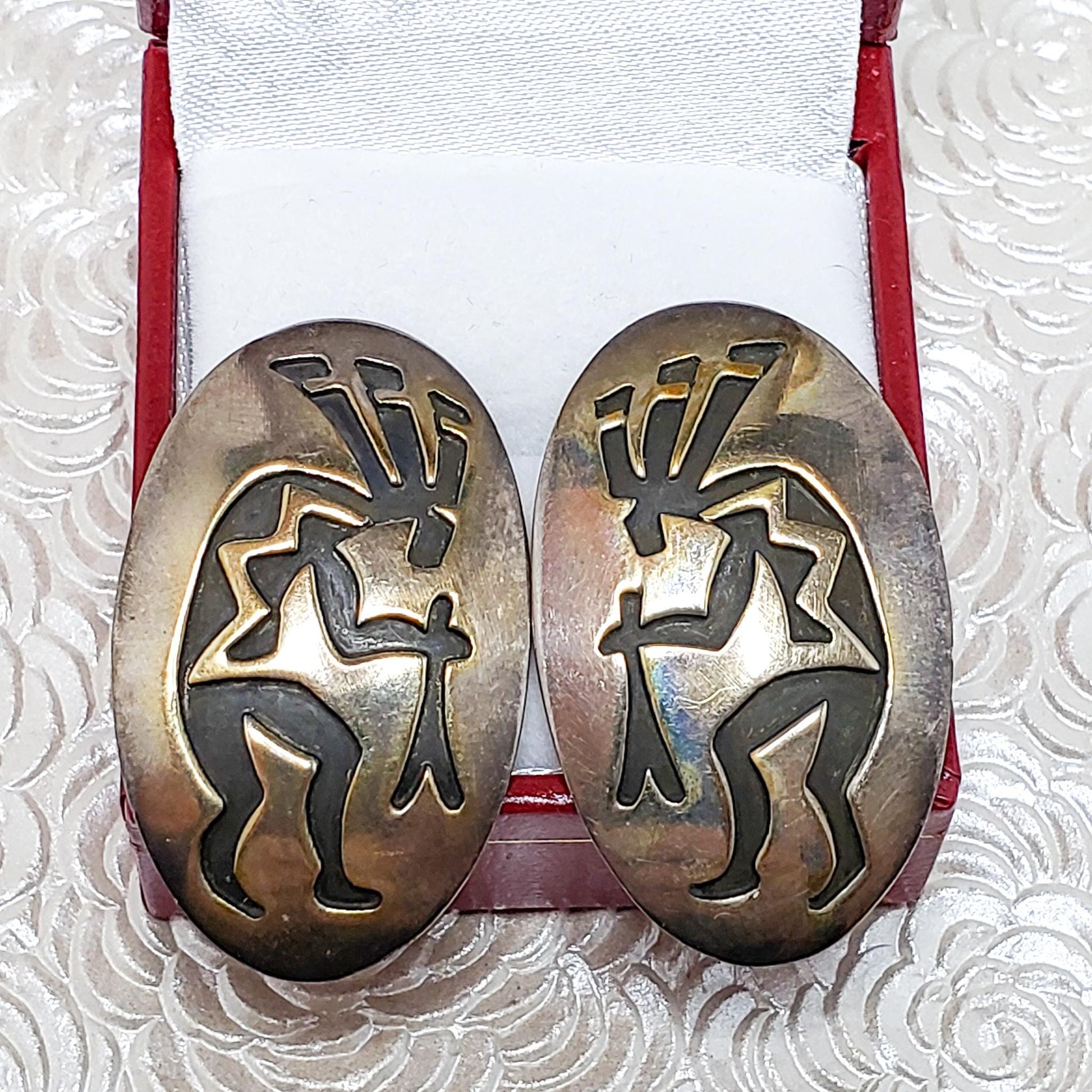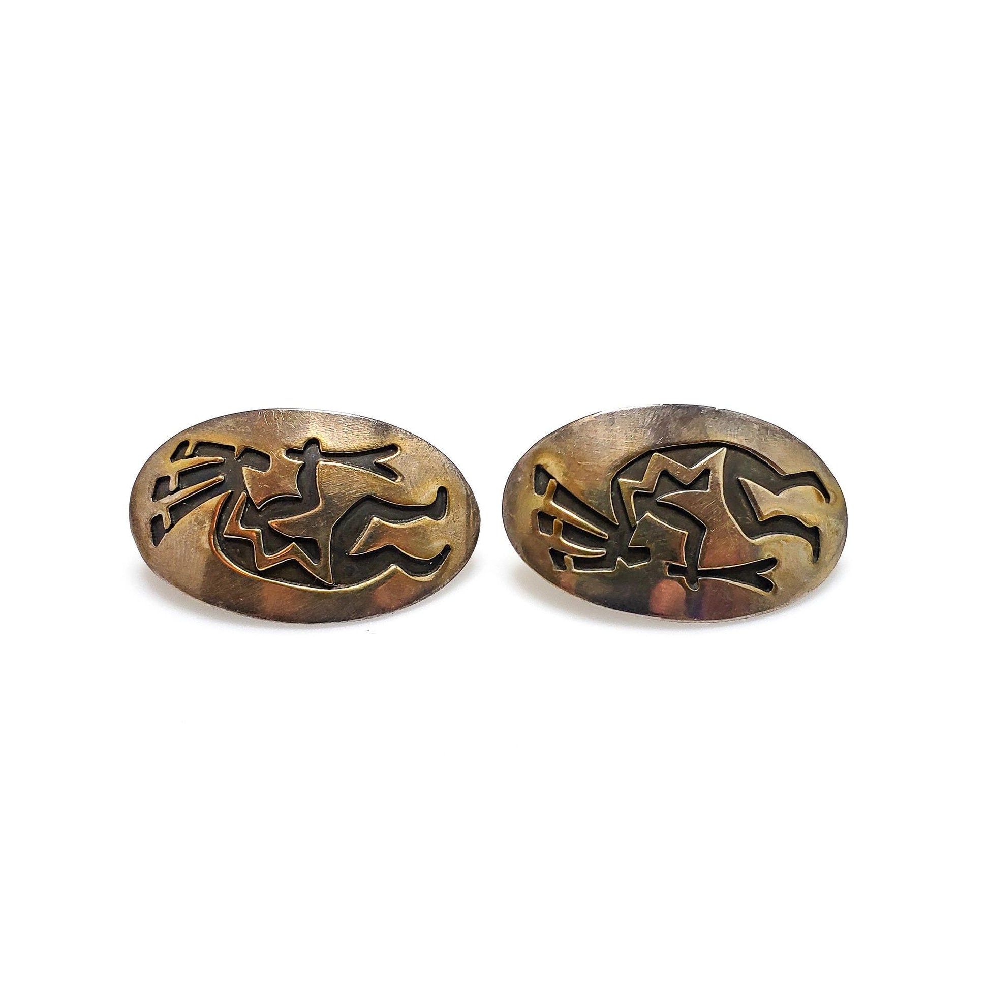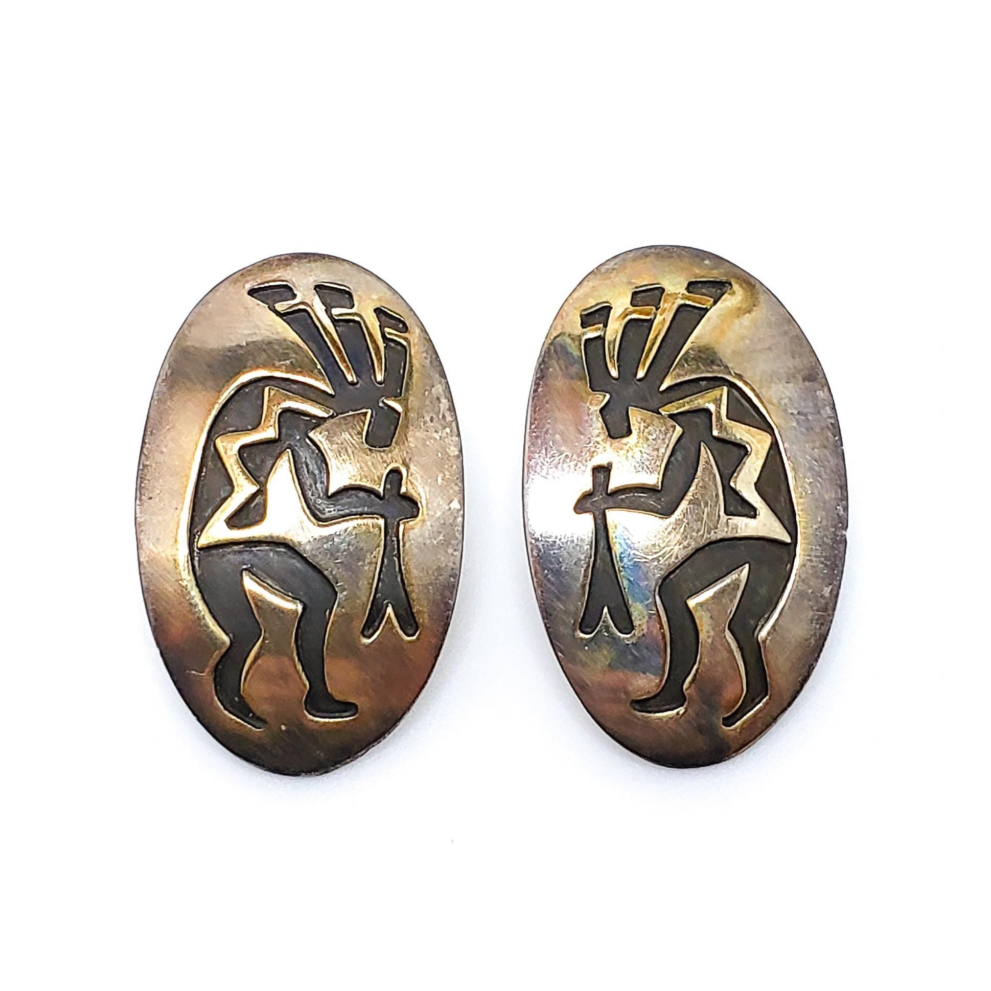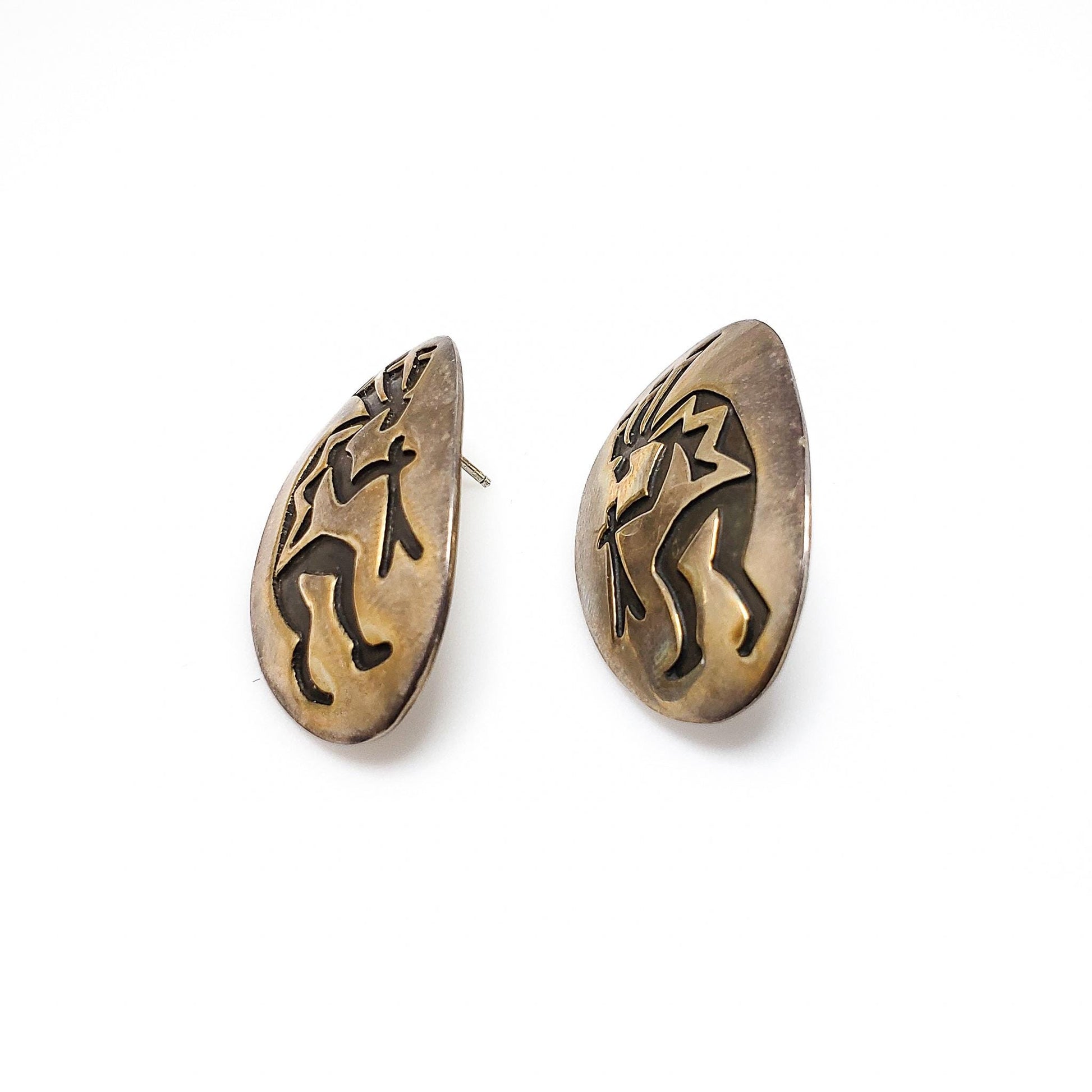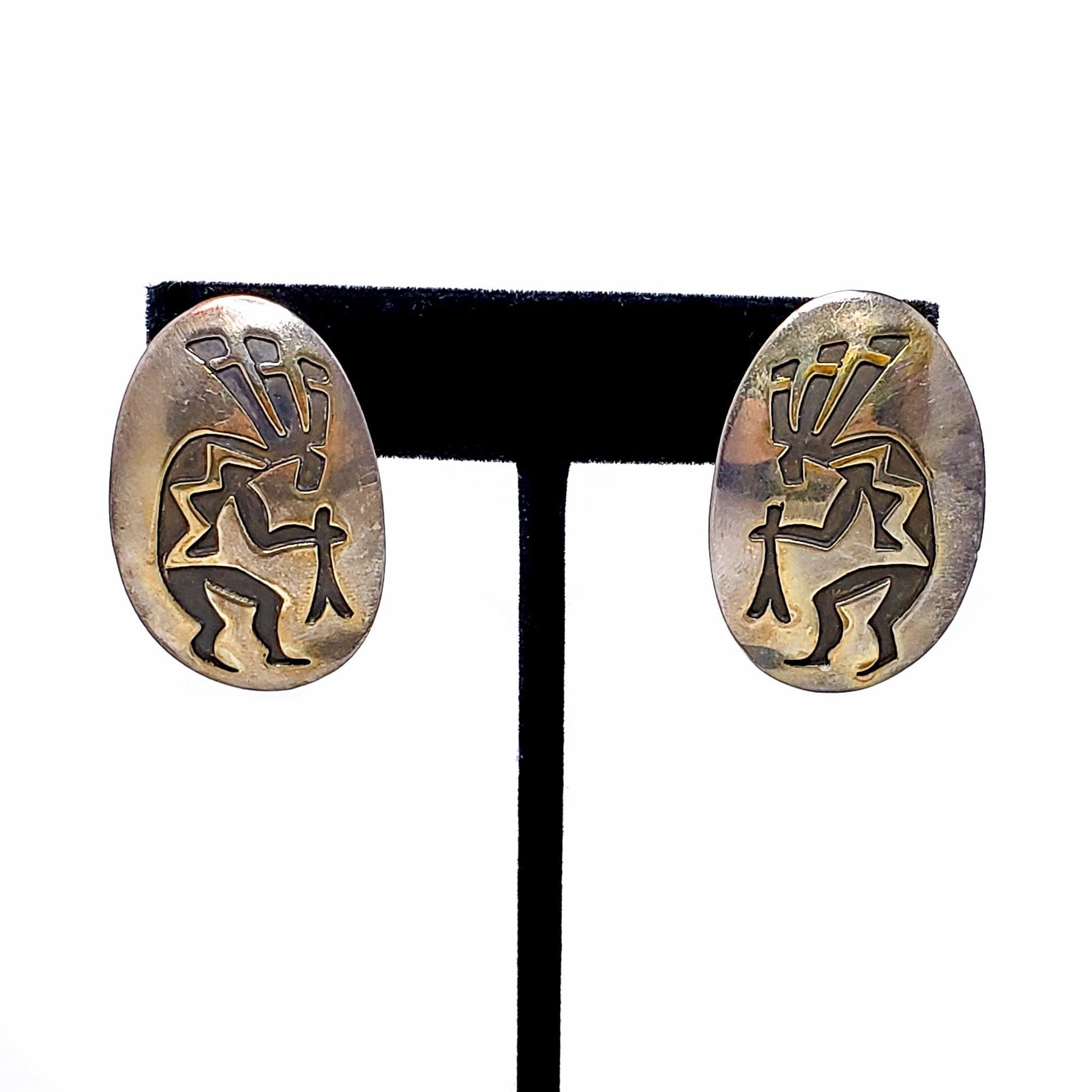 Vintage 1970s E. CLARK Navajo Native American Kokopelli Sterling Silver Large Statement Southwestern Pierced Earrings